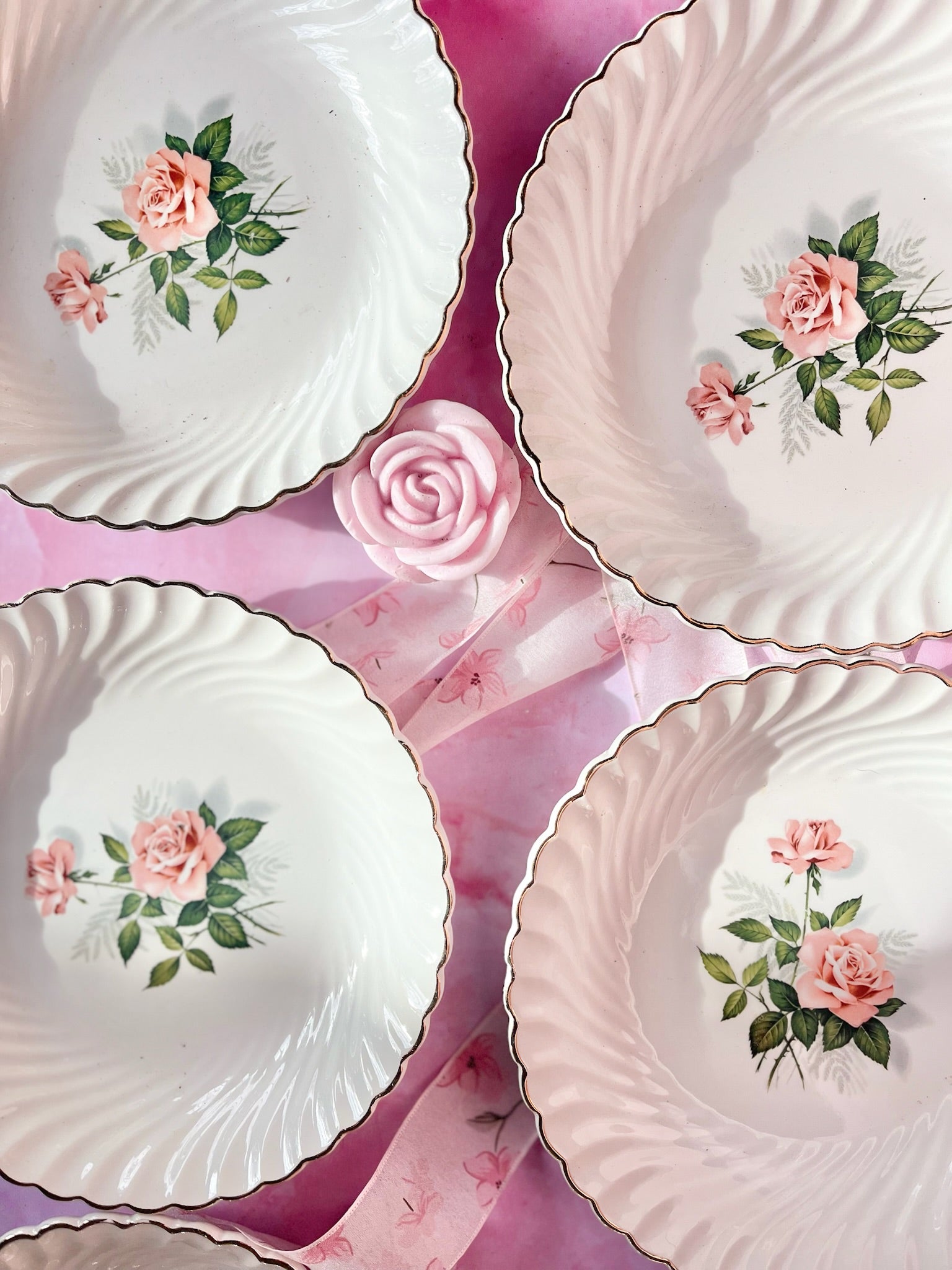✨ Lot de 6 assiettes à dessert semi-creuses “Rose May” – Lunéville ✨