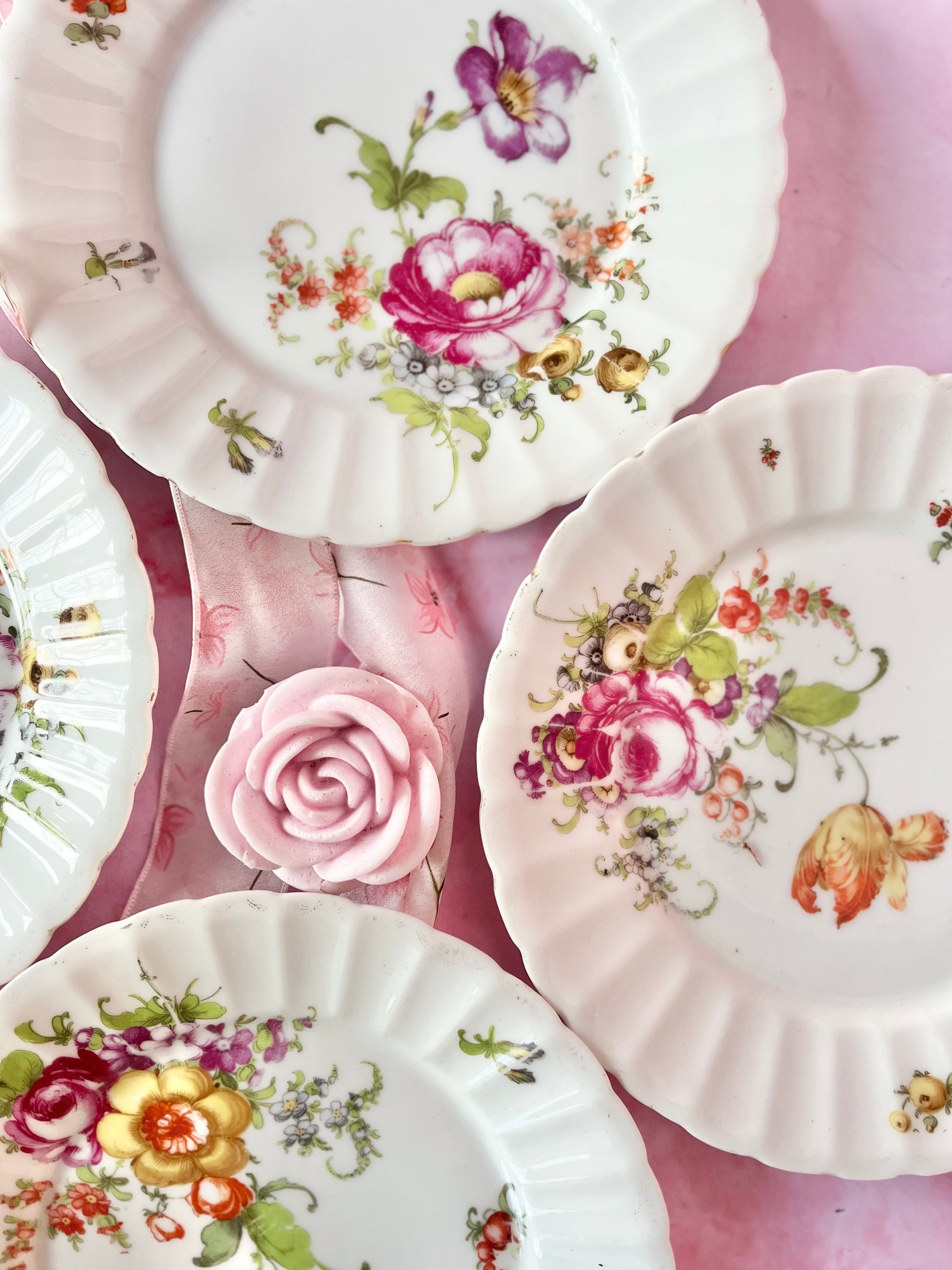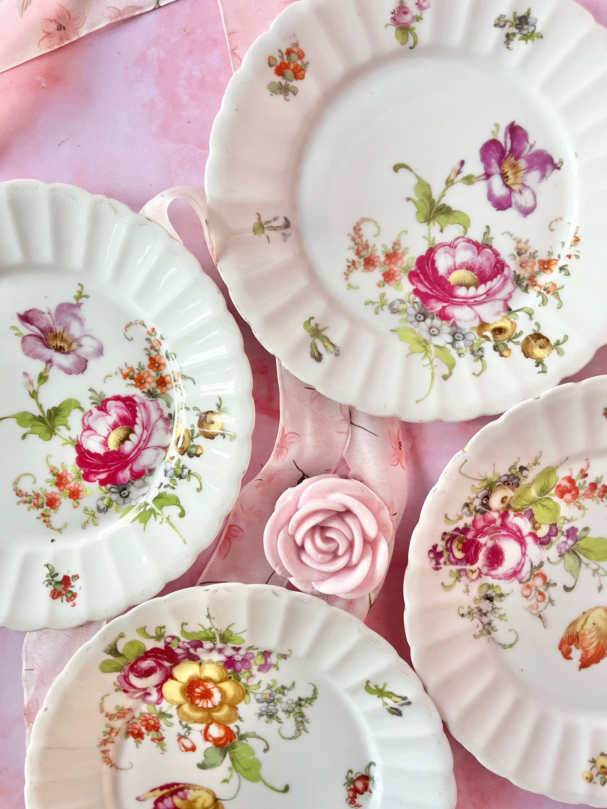 ✨ Lot de 4 assiettes vintage en porcelaine – décor floral ✨