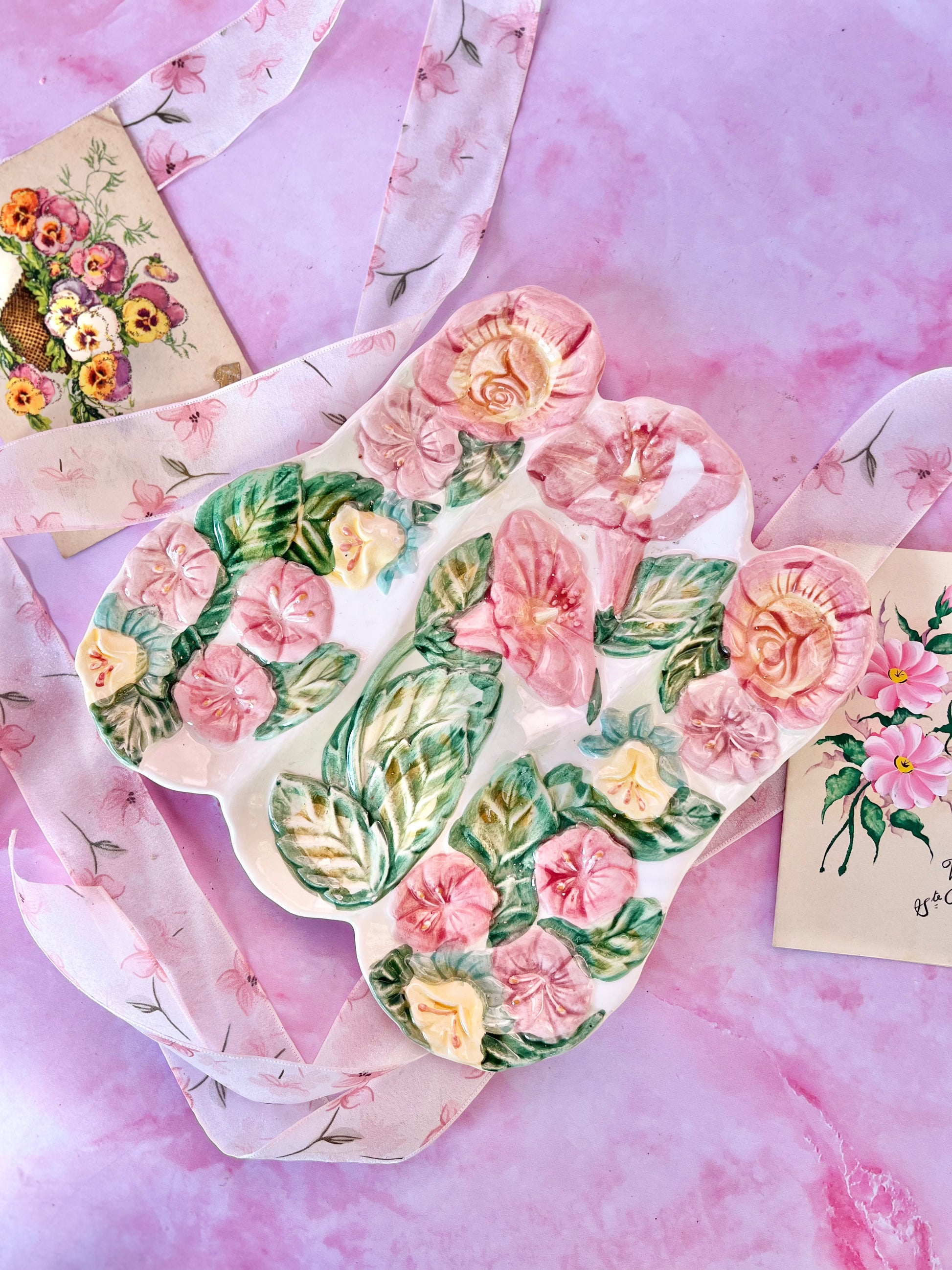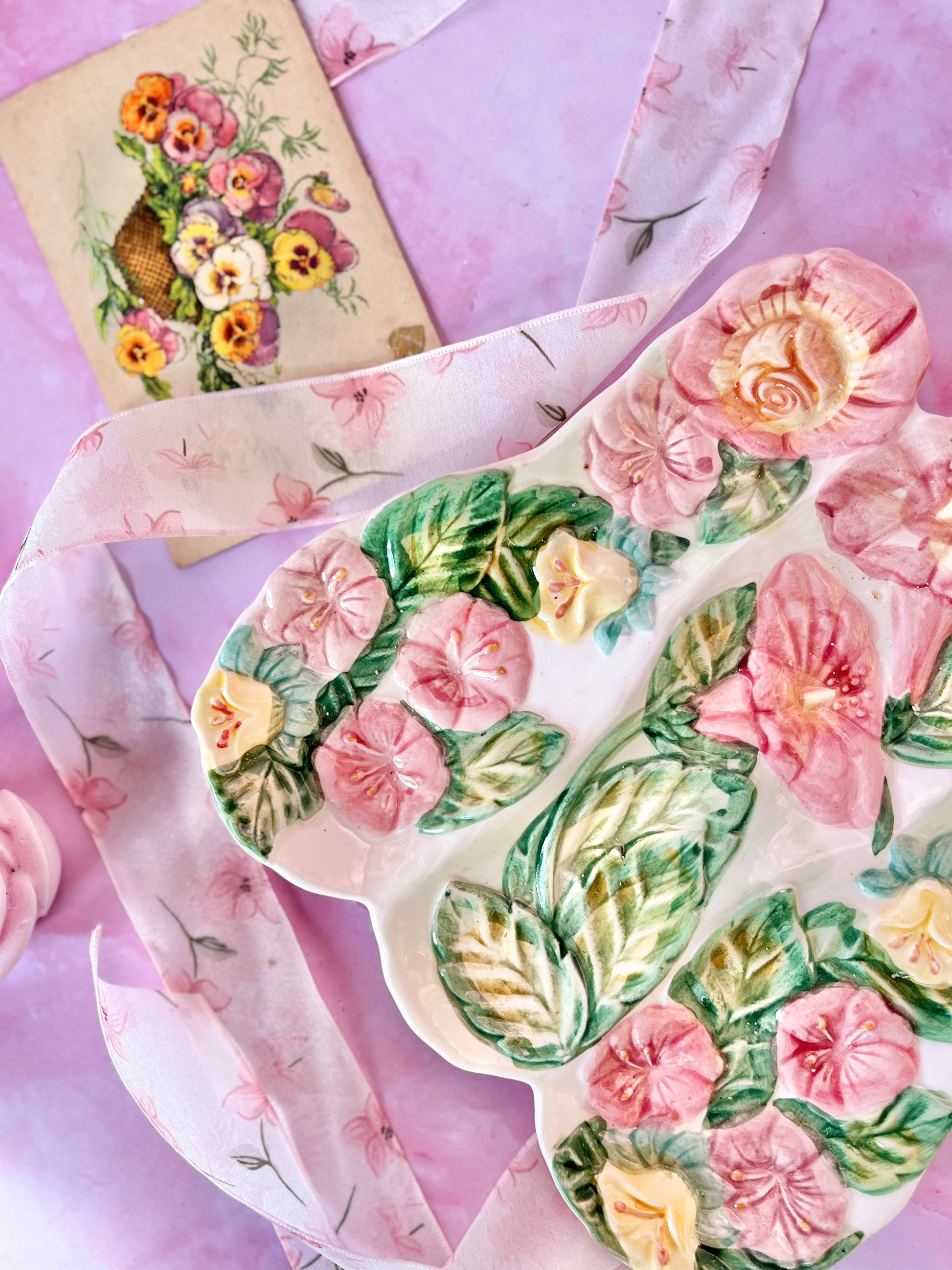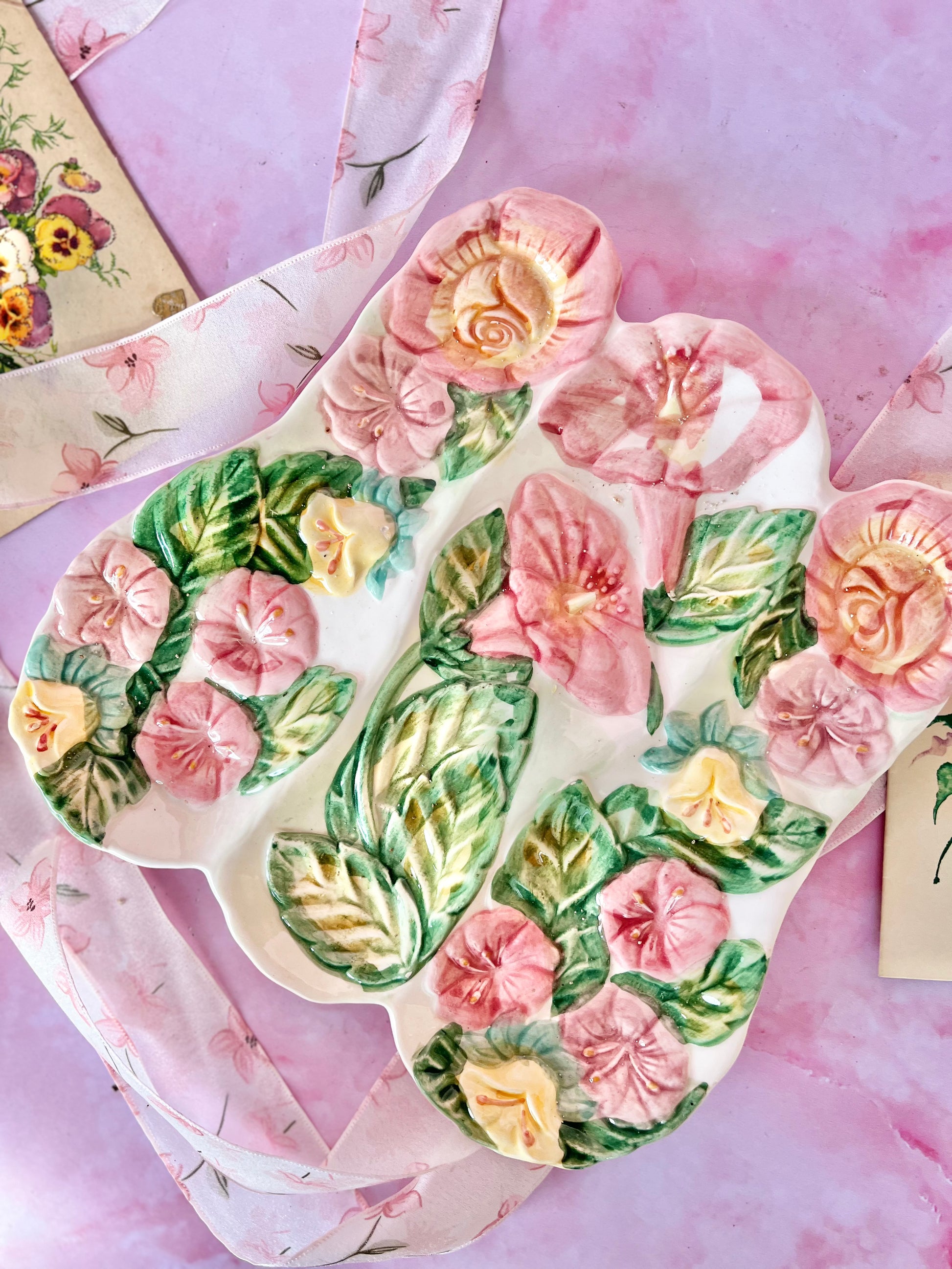 ✨ Repose-cuillère / Vide poche barbotine • Décor floral • Ultra girly ✨