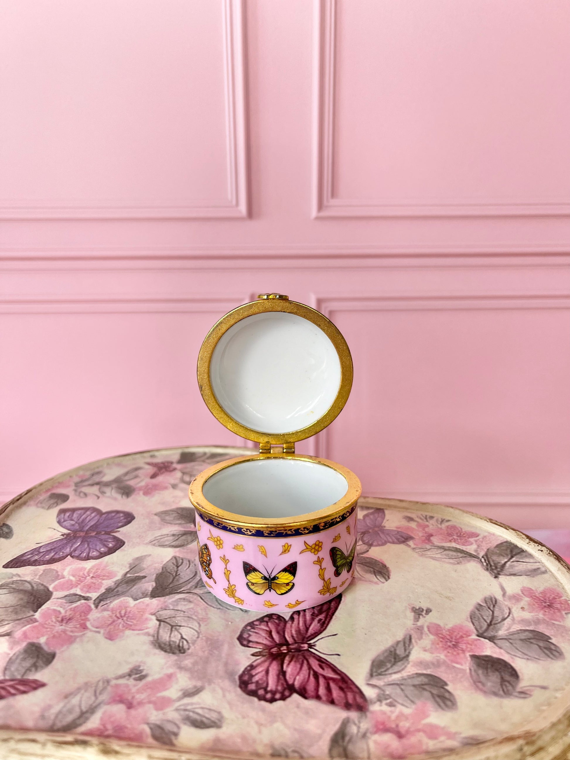 Boîte en porcelaine papillons rose