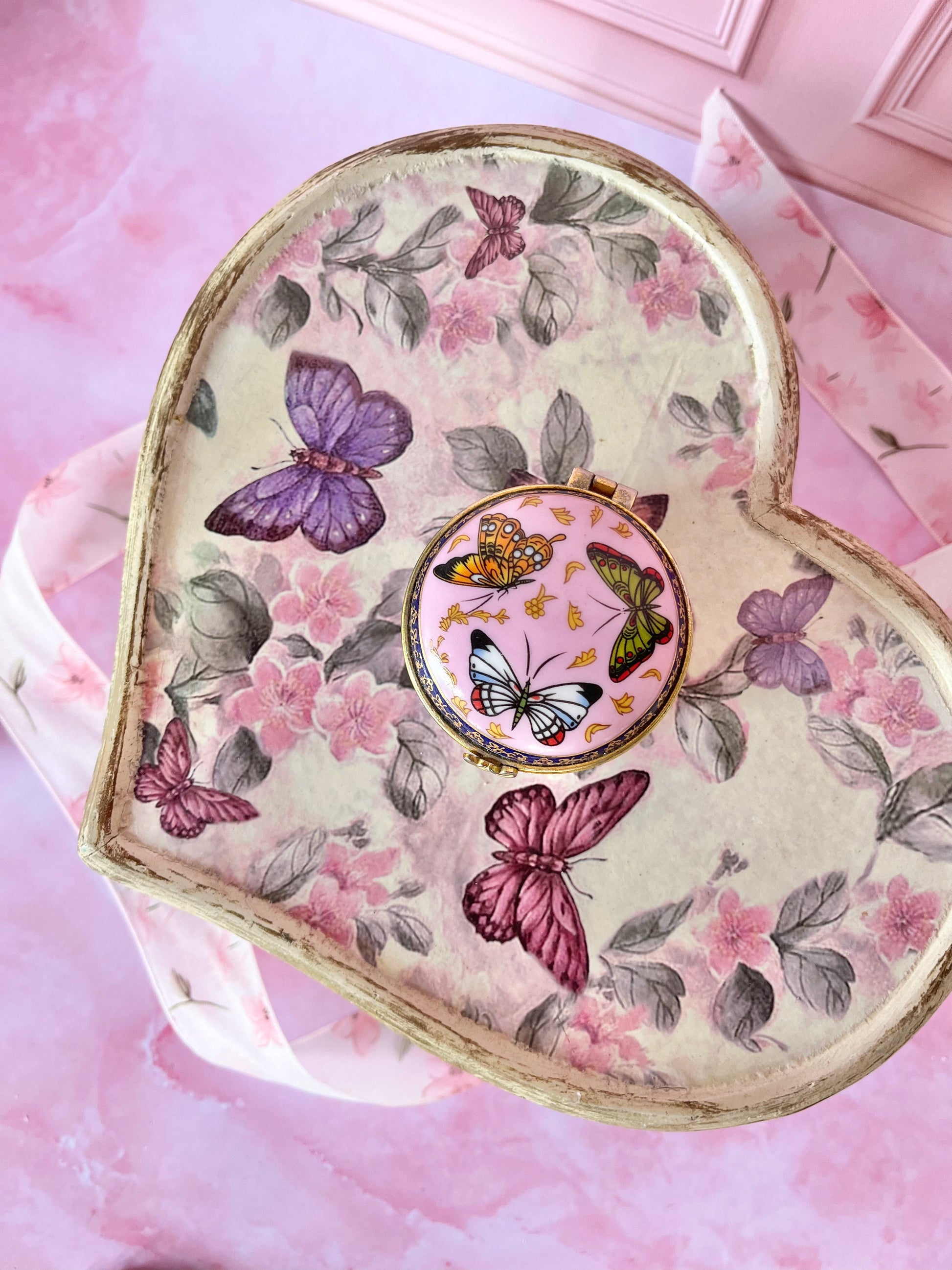 ✨ Boîte papillon rose en porcelaine