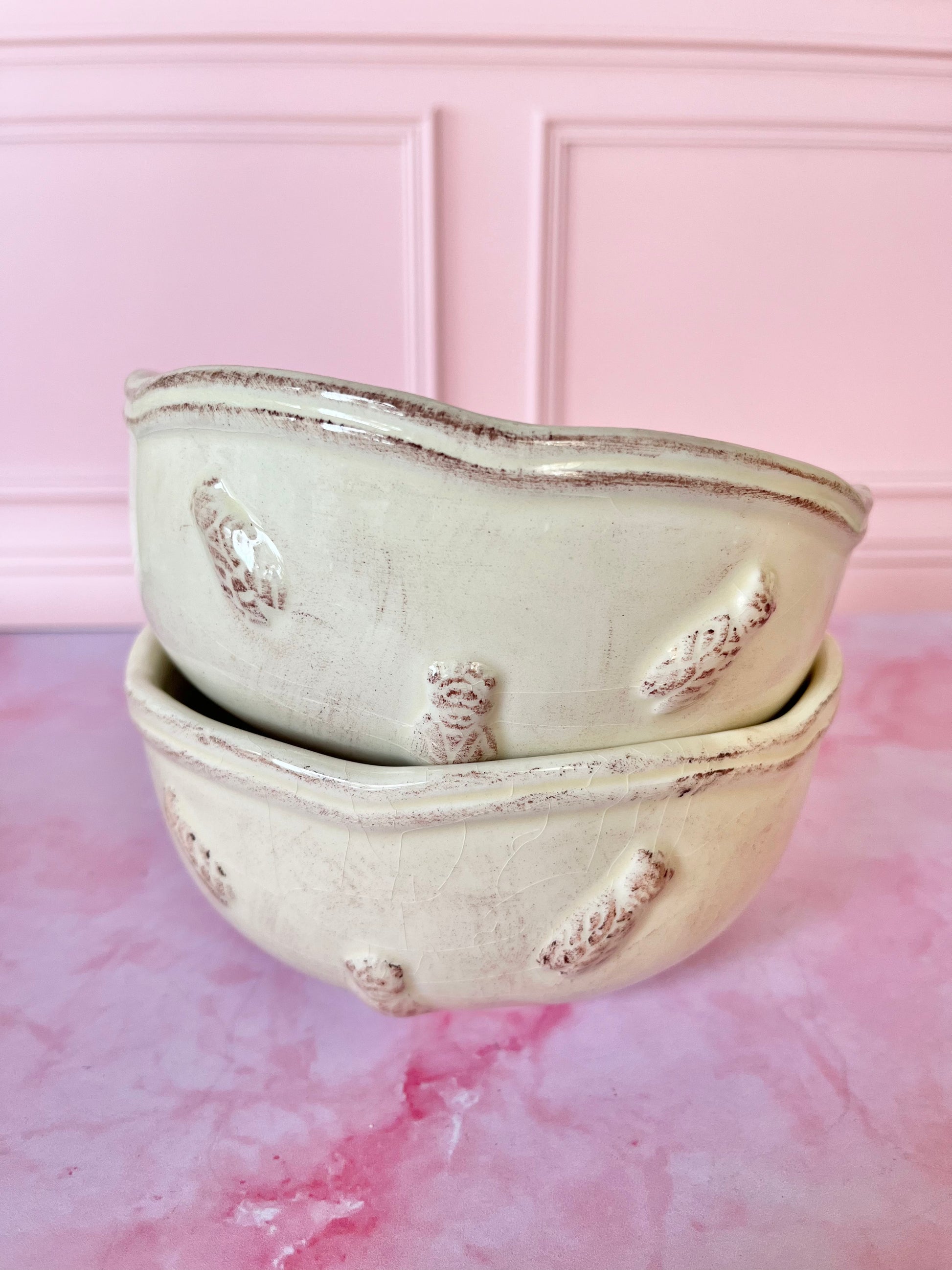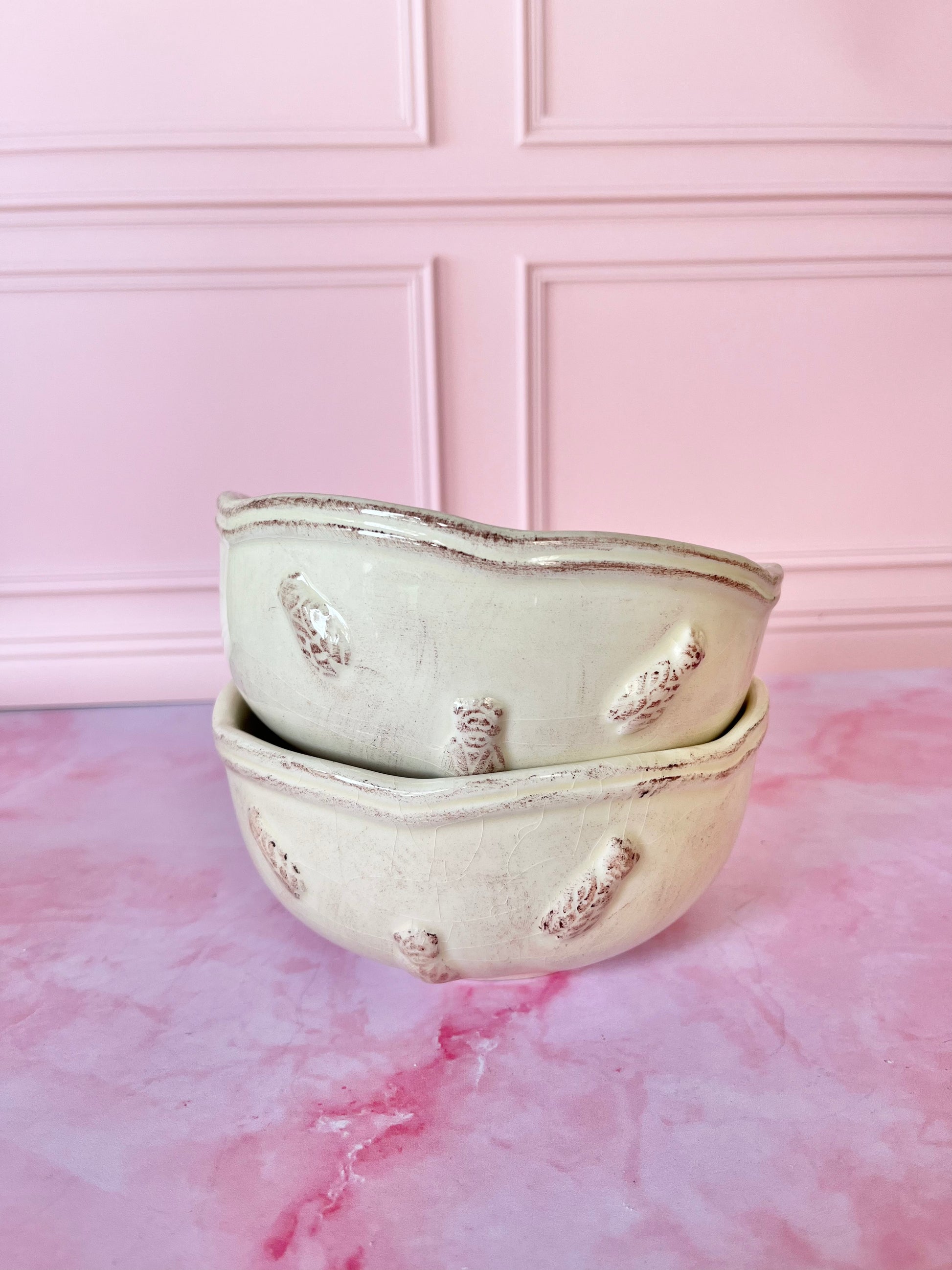 Craquez pour cette paire de bols en cĂ©ramique beige, dĂ©corĂ©s de jolies cigales â un clin dâĆil au sud et Ă la douceur des matins ensoleillĂ©s âïž