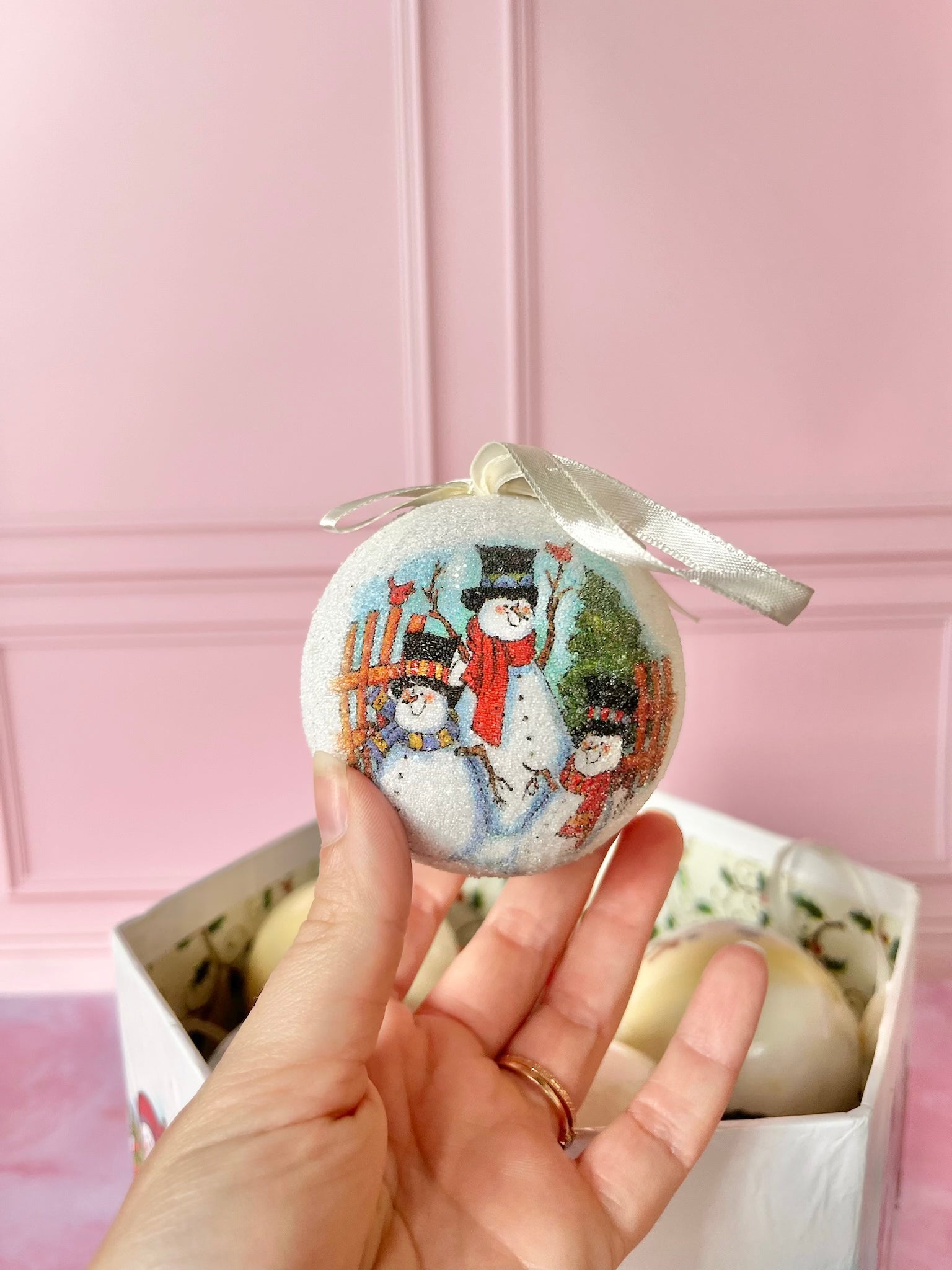 ❄️ Lot de 12 boules de Noël vintage blanches et brillantes