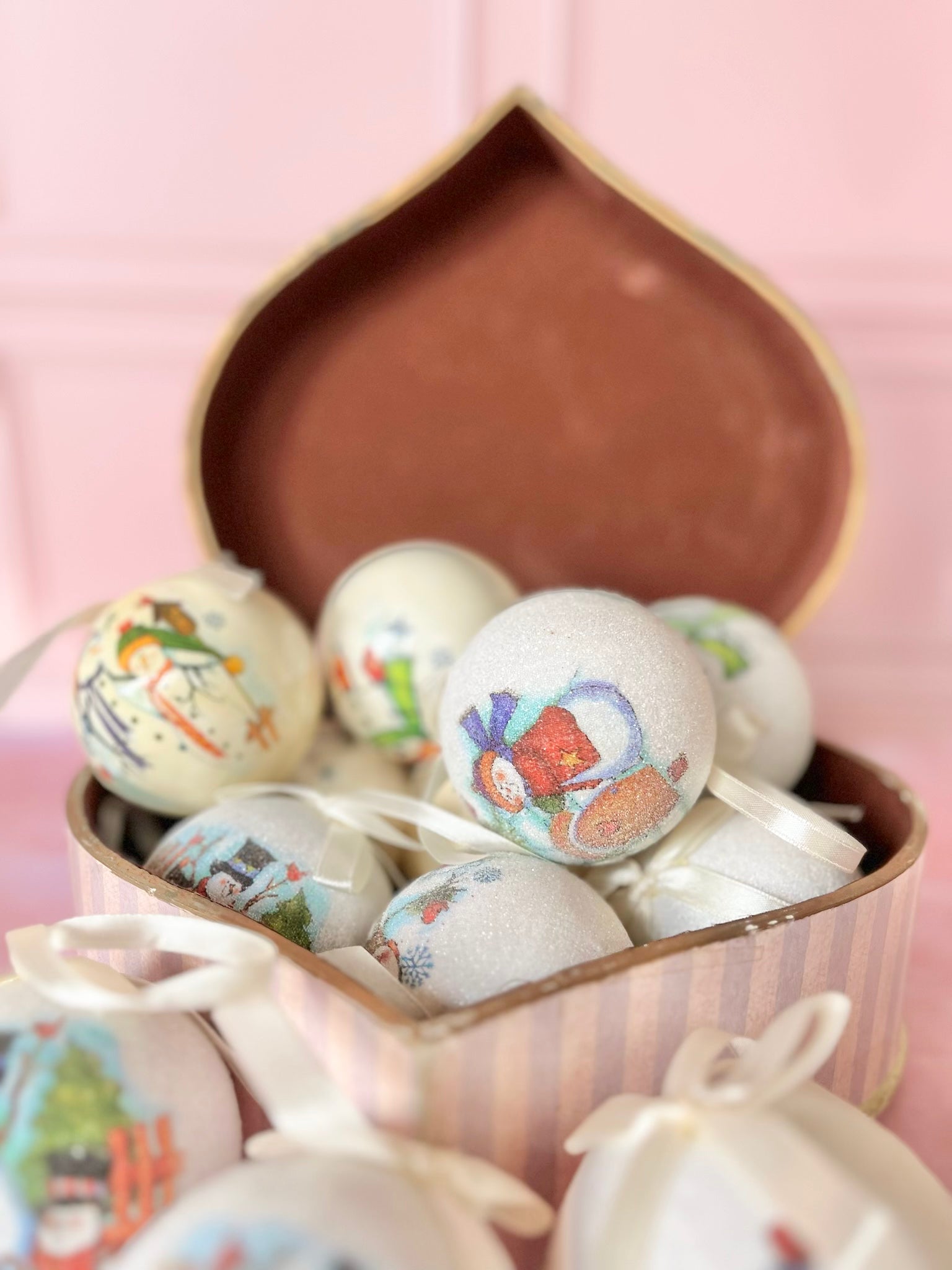 Suspendez-les dans votre sapin, mélangez-les avec des guirlandes ou d’autres décorations vintage pour un rendu chic et féerique. Idéal pour créer une ambiance de Noël magique et joyeuse.