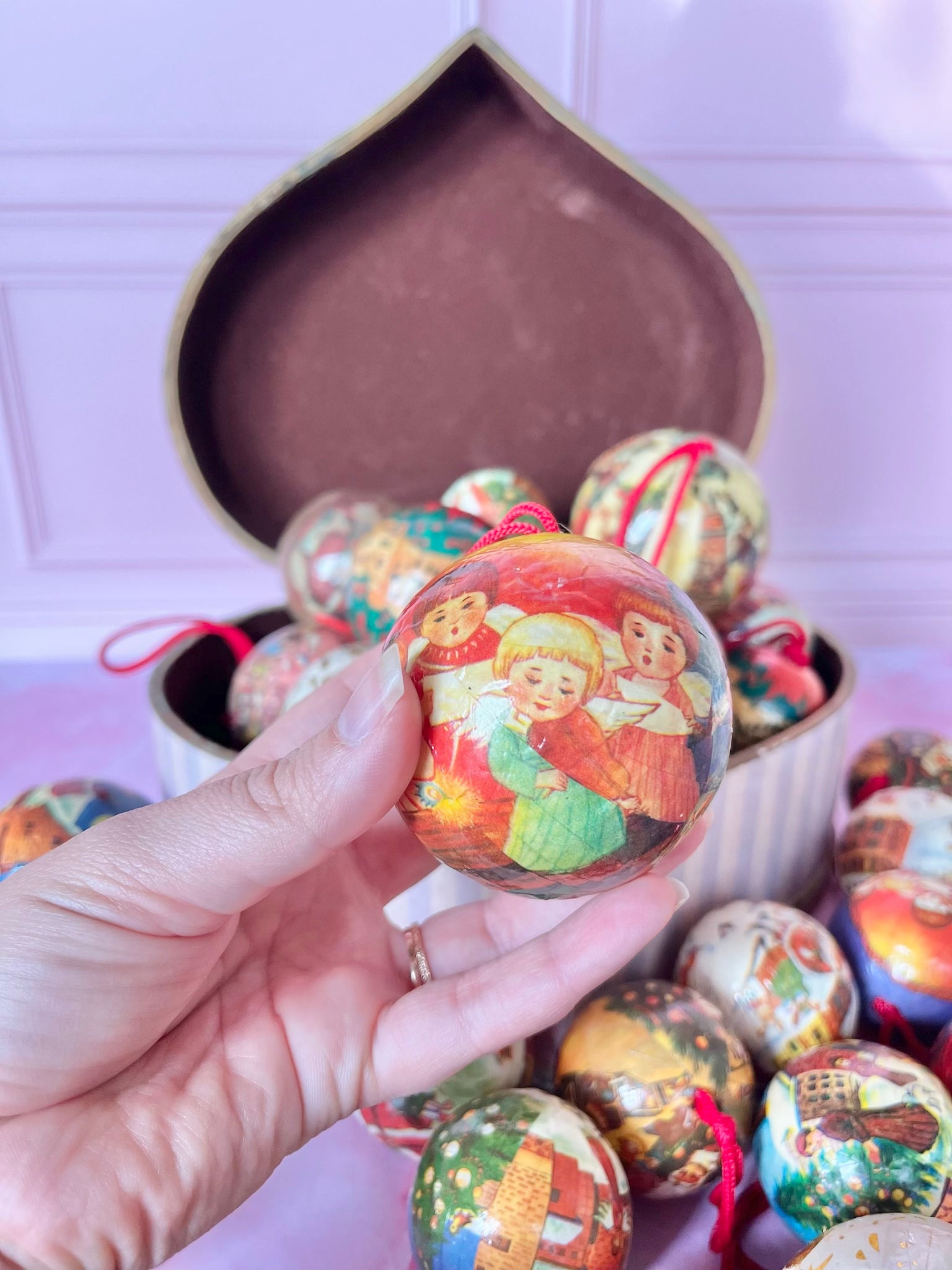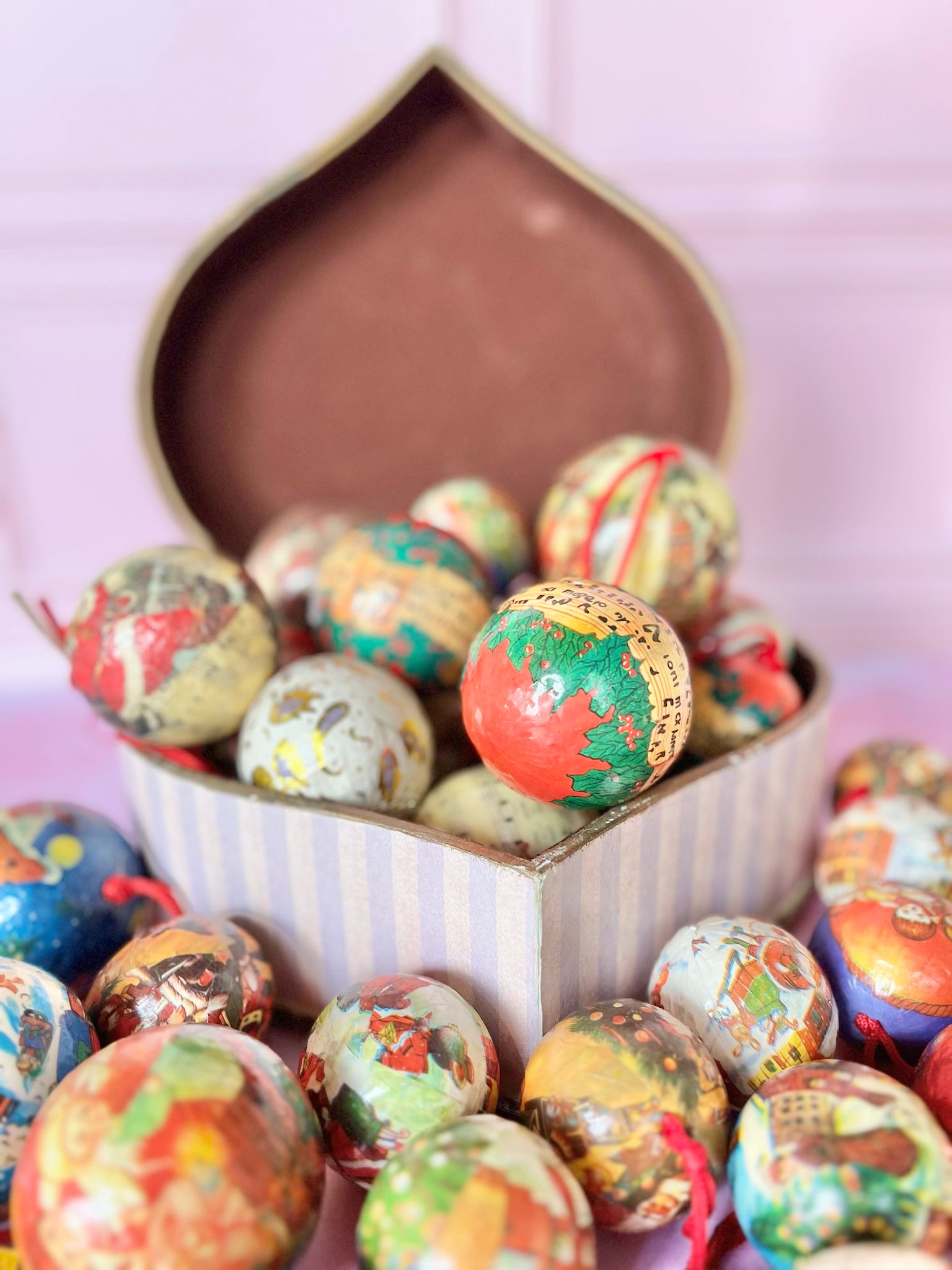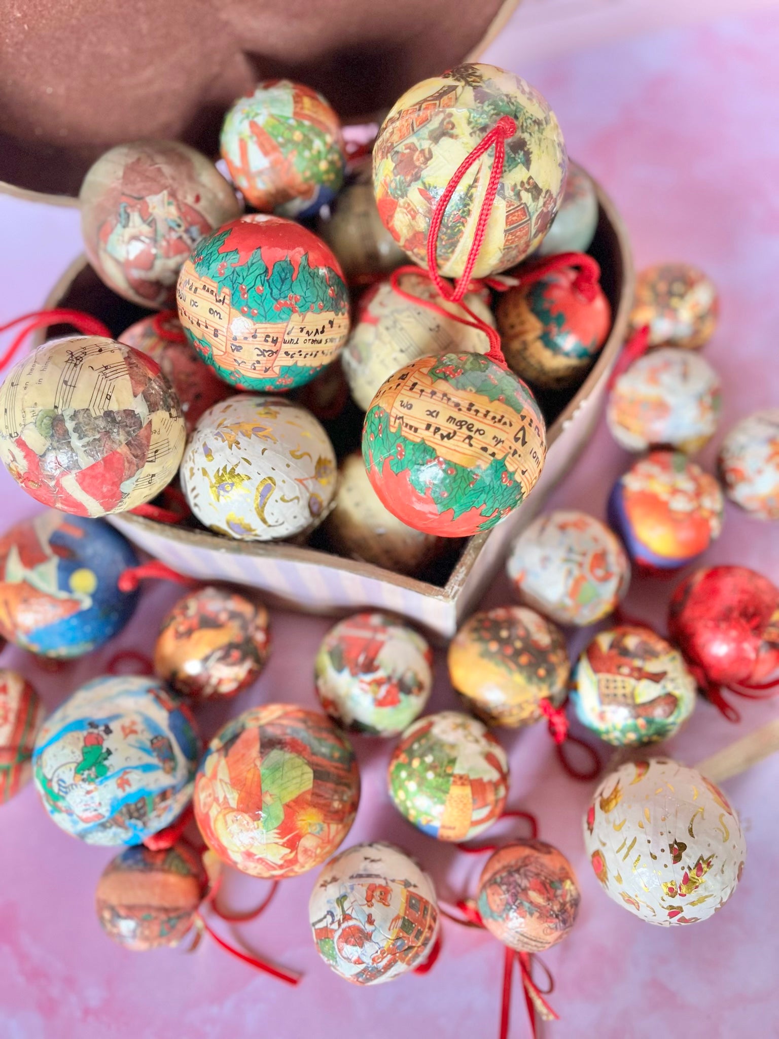 Apportez une touche vintage et chaleureuse à votre sapin avec ce lot de 40 boules de Noël en papier mùché. Dépareillées et de tailles différentes, elles créent un effet joyeux et original, pour un sapin plein de caractÚre et de poésie.