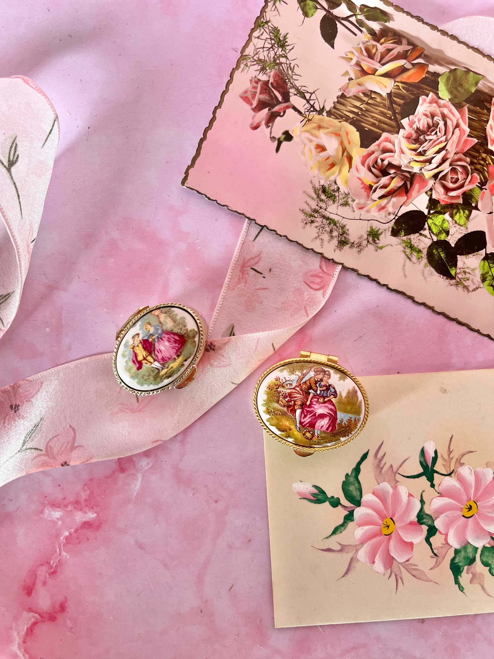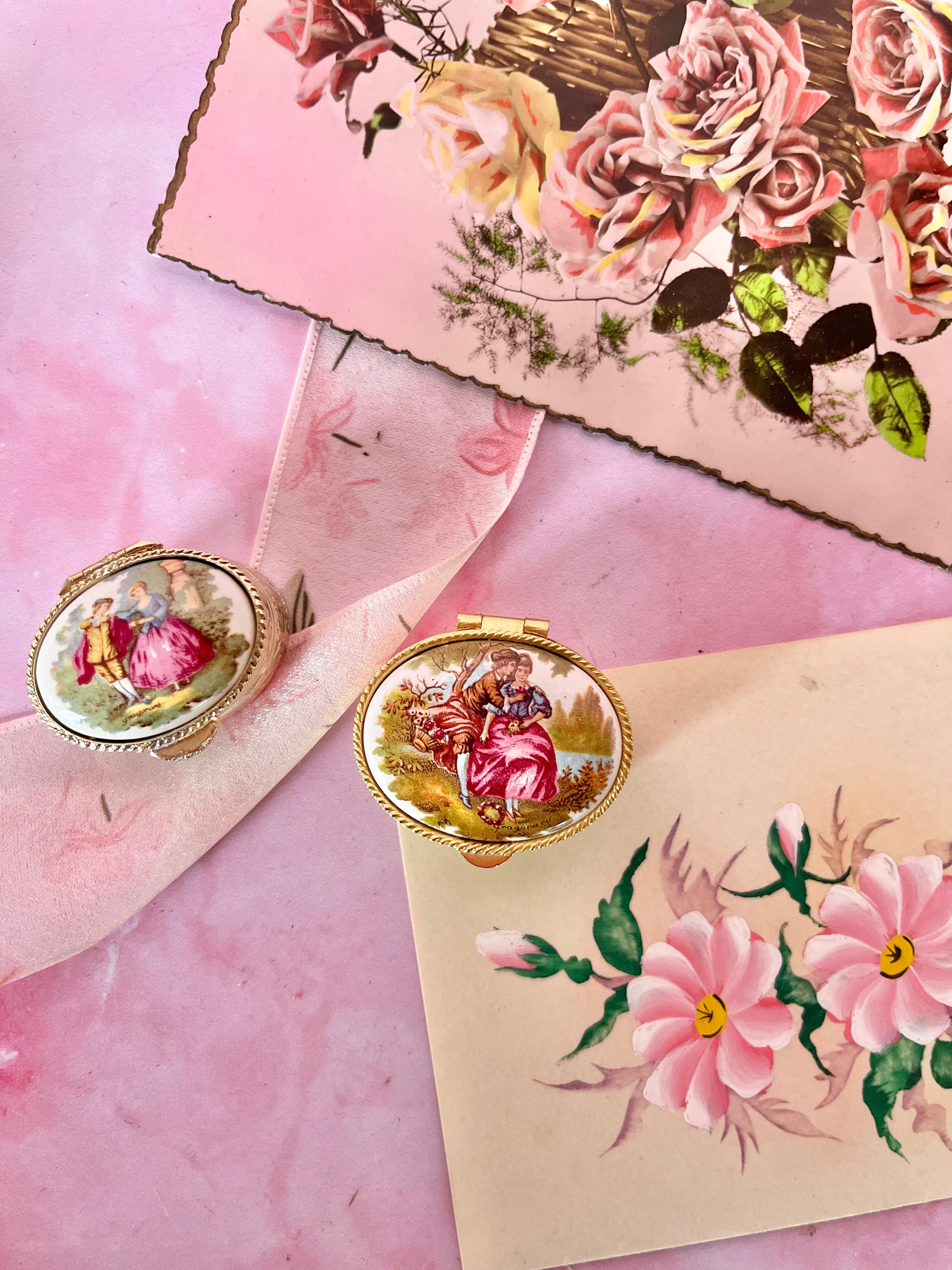 ✨ Paire de piluliers – décor scène galante ✨