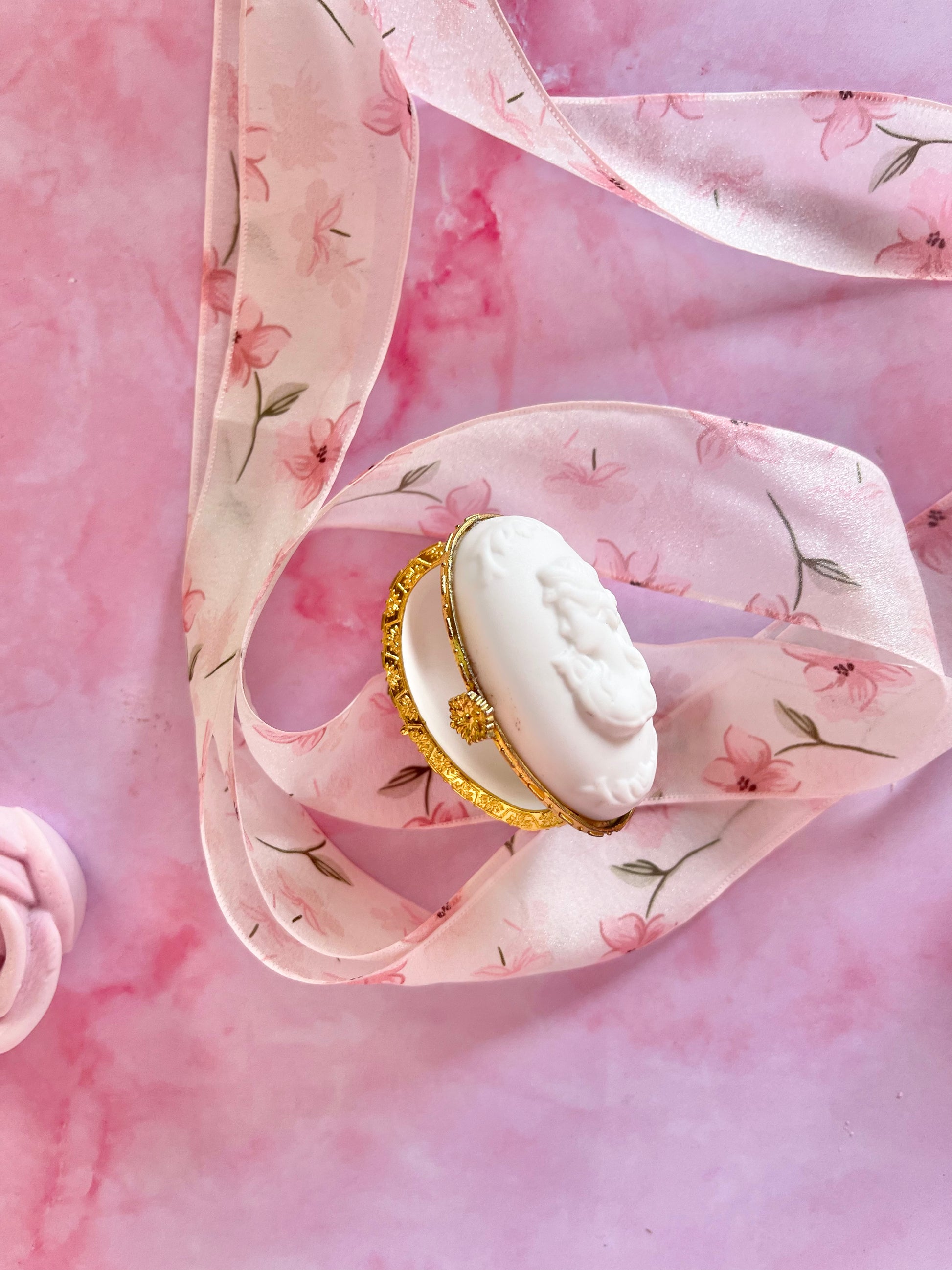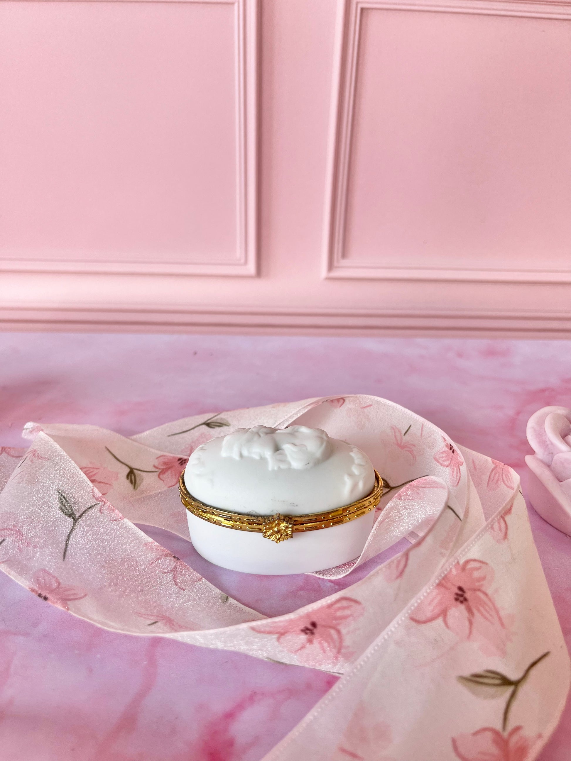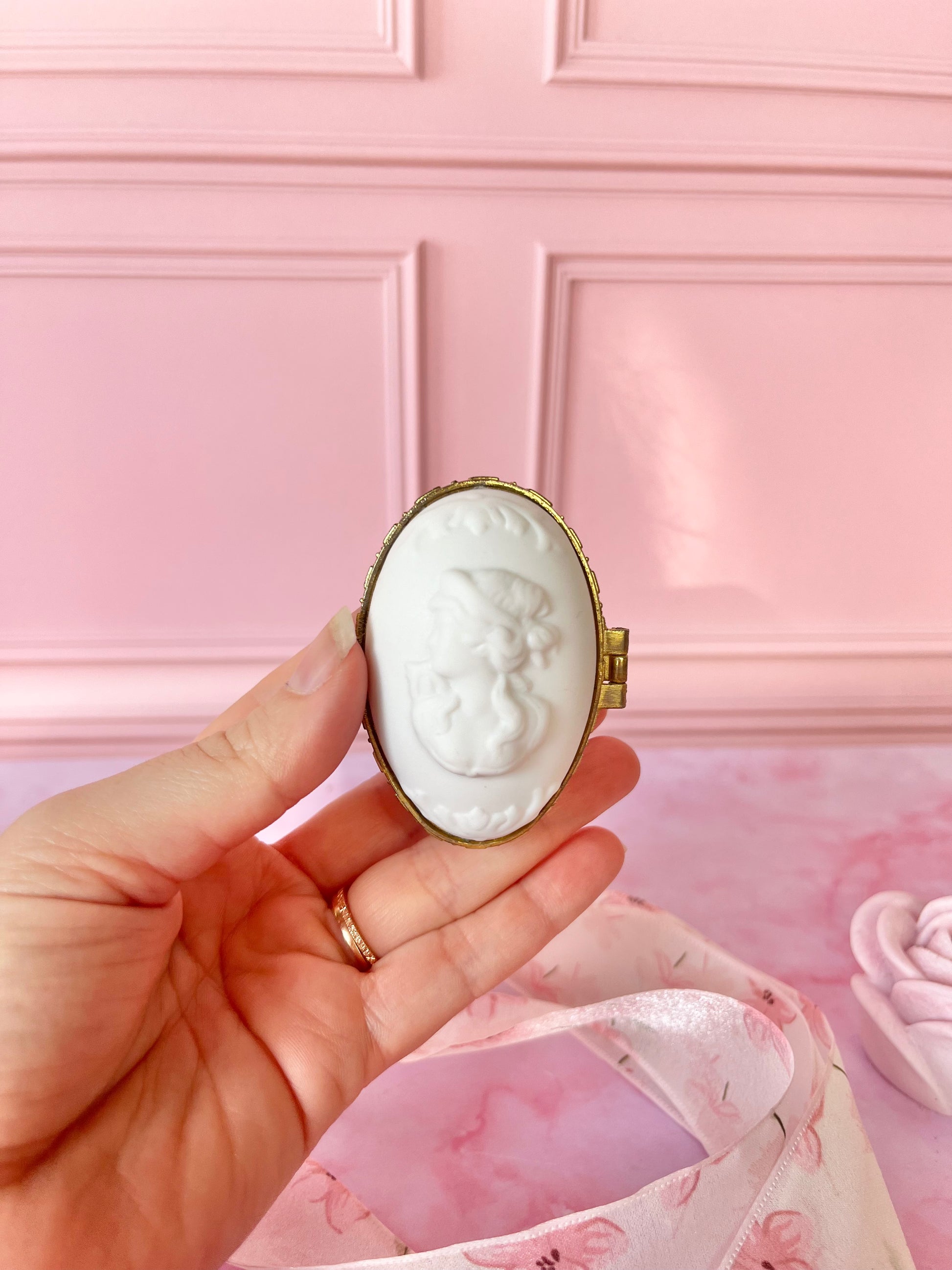 Craquez pour ce superbe pilulier ovale style camée, orné d’un décor en relief raffiné qui lui donne un charme absolument irrésistible. Ses contours dorés ajoutent une touche d’élégance classique, en faisant une pièce aussi belle que pratique.