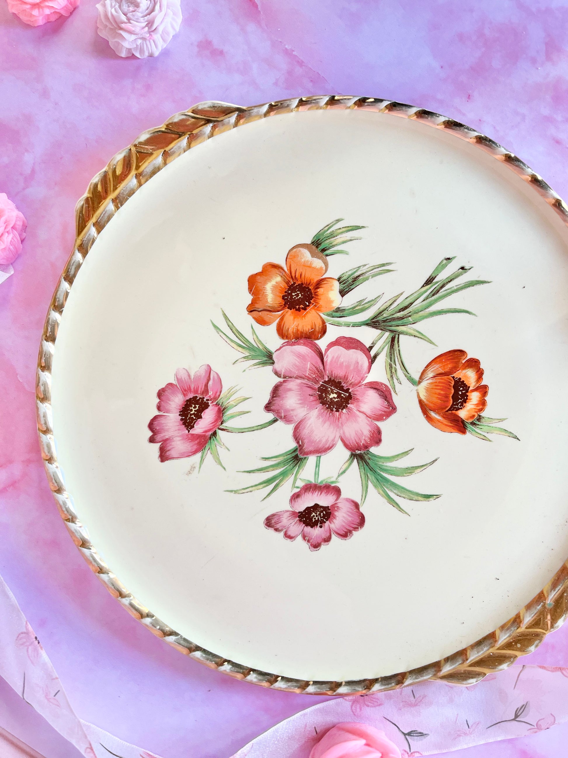 ✨ Plat à tarte vintage – décor floral ✨