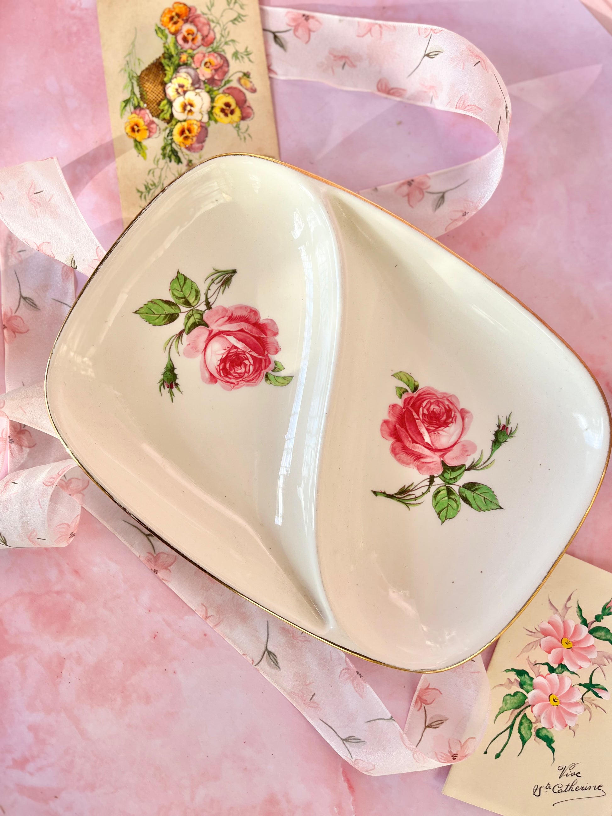 ✨ Plat à deux compartiments • Porcelaine • Décor floral ✨