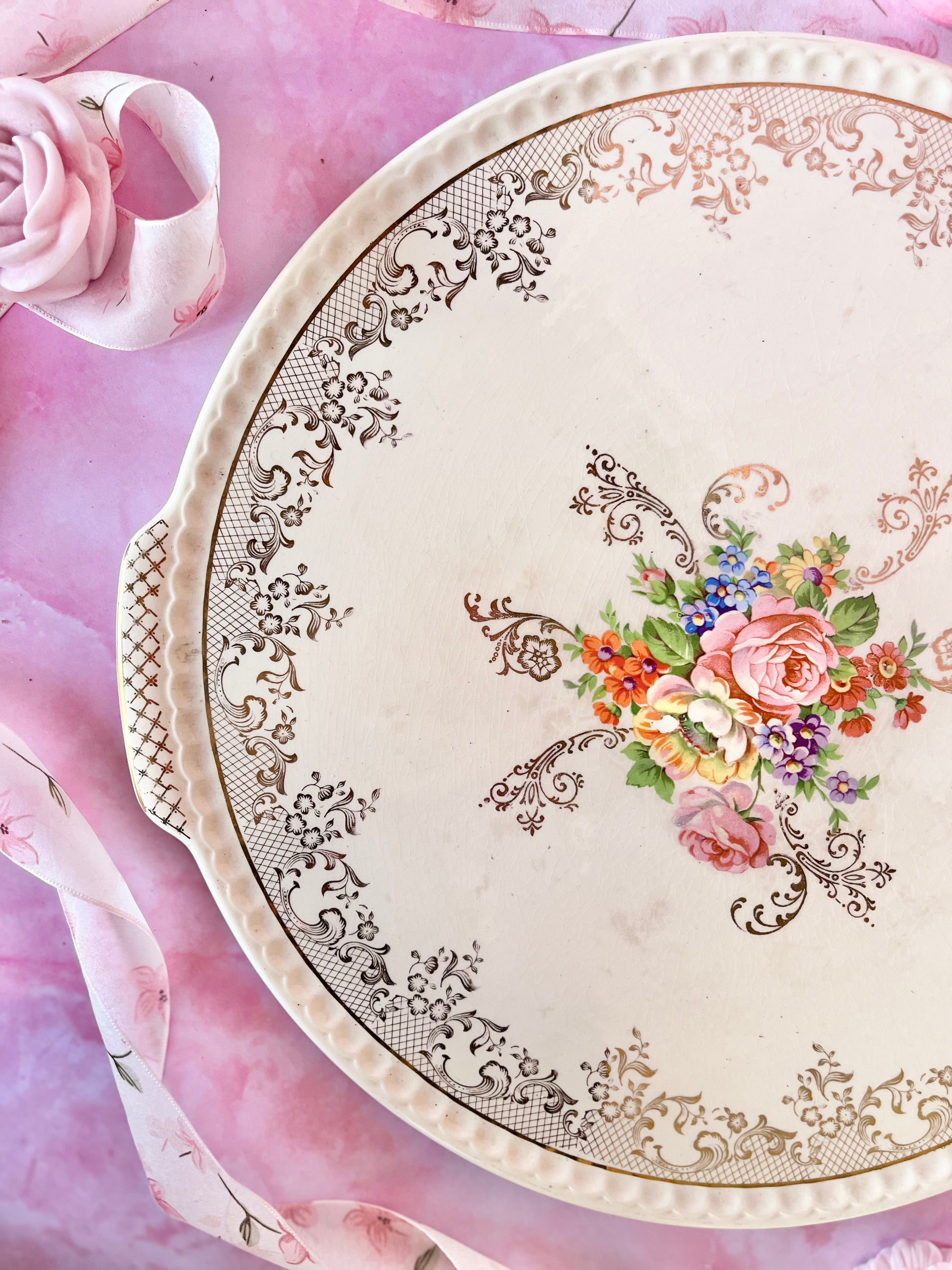 ✨ Grand plat Villeroy & Boch – décor floral et doré ✨