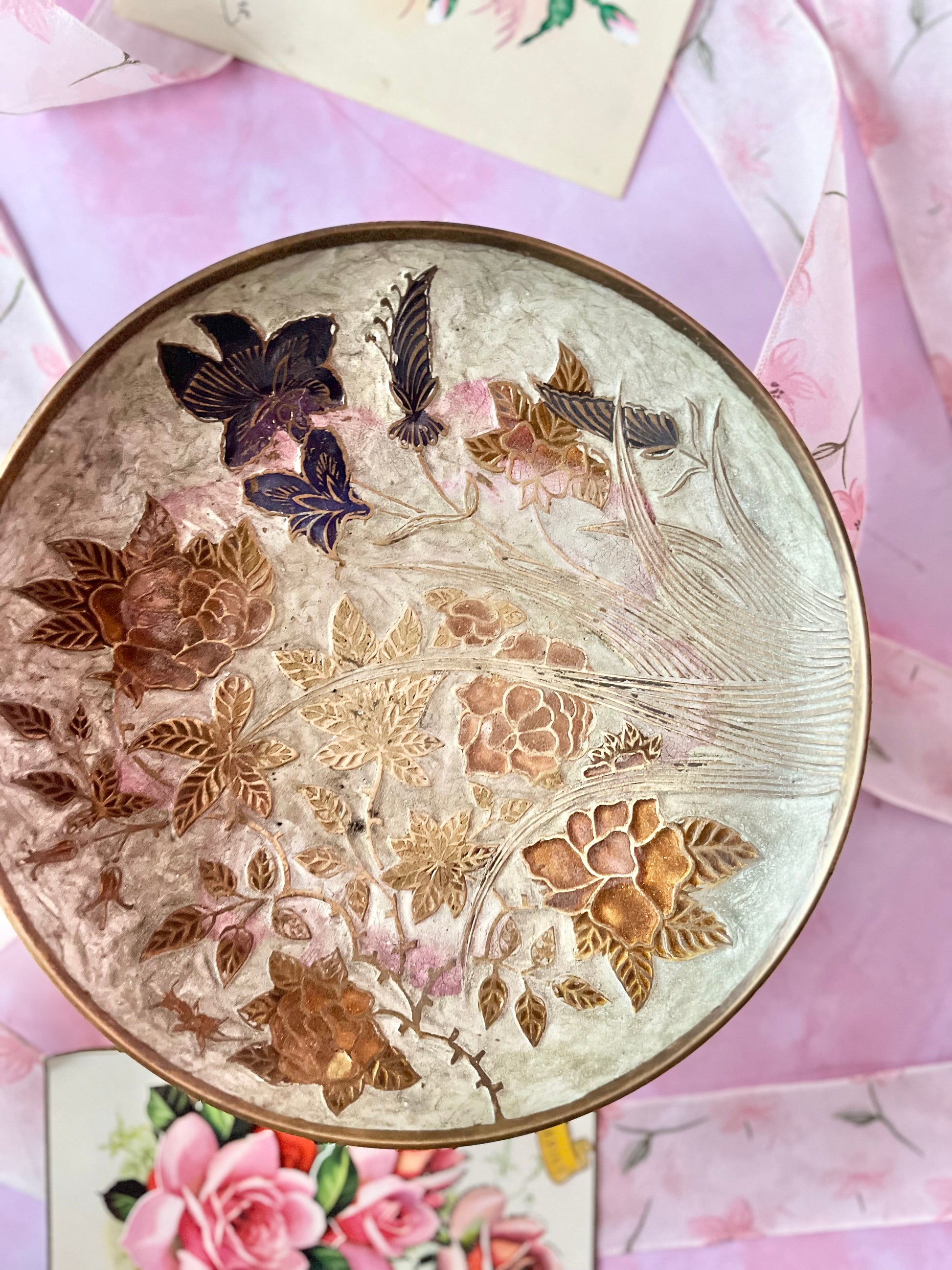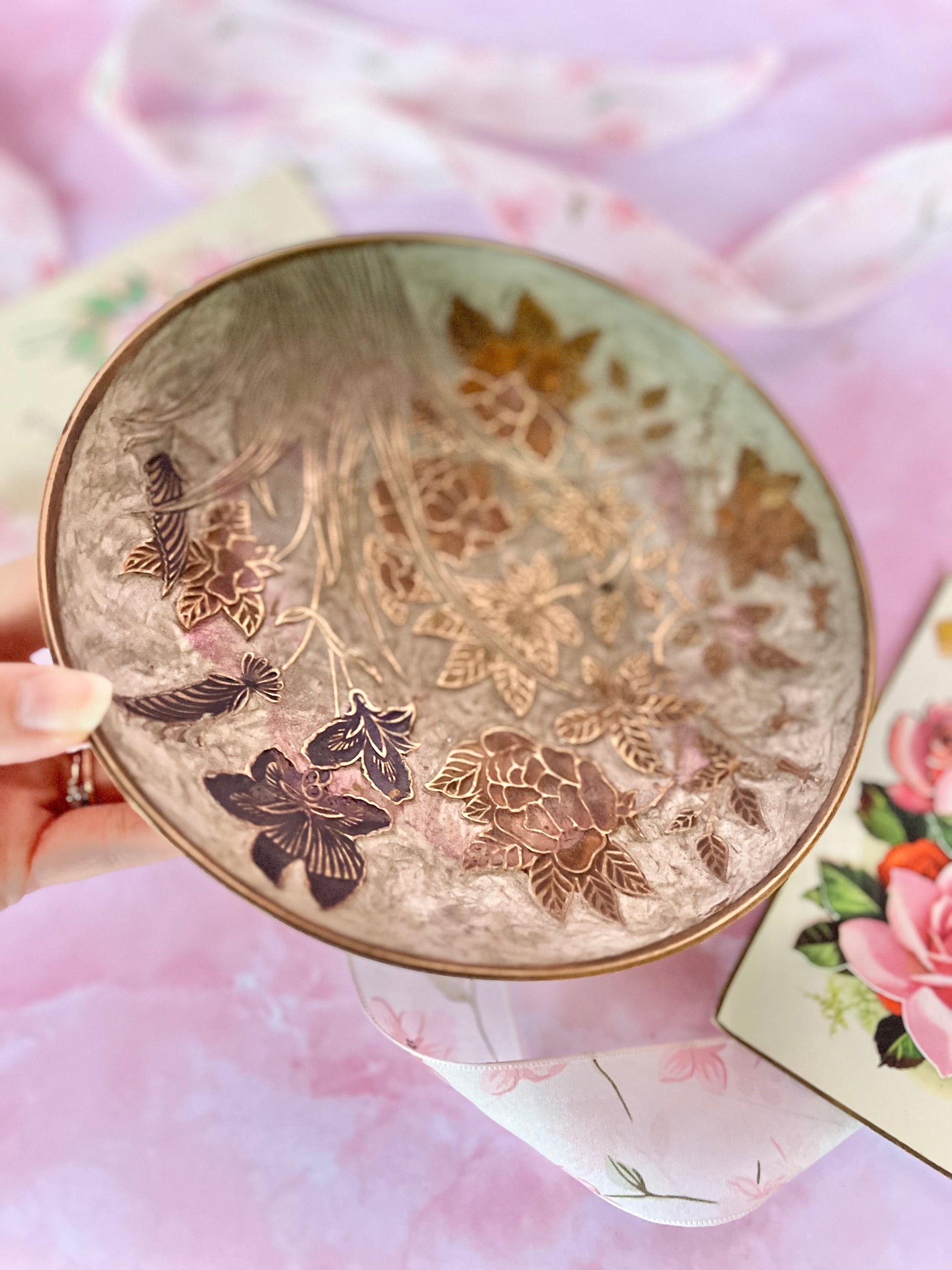 ✨ Magnifique coupelle en laiton vintage – décor émaillé ✨