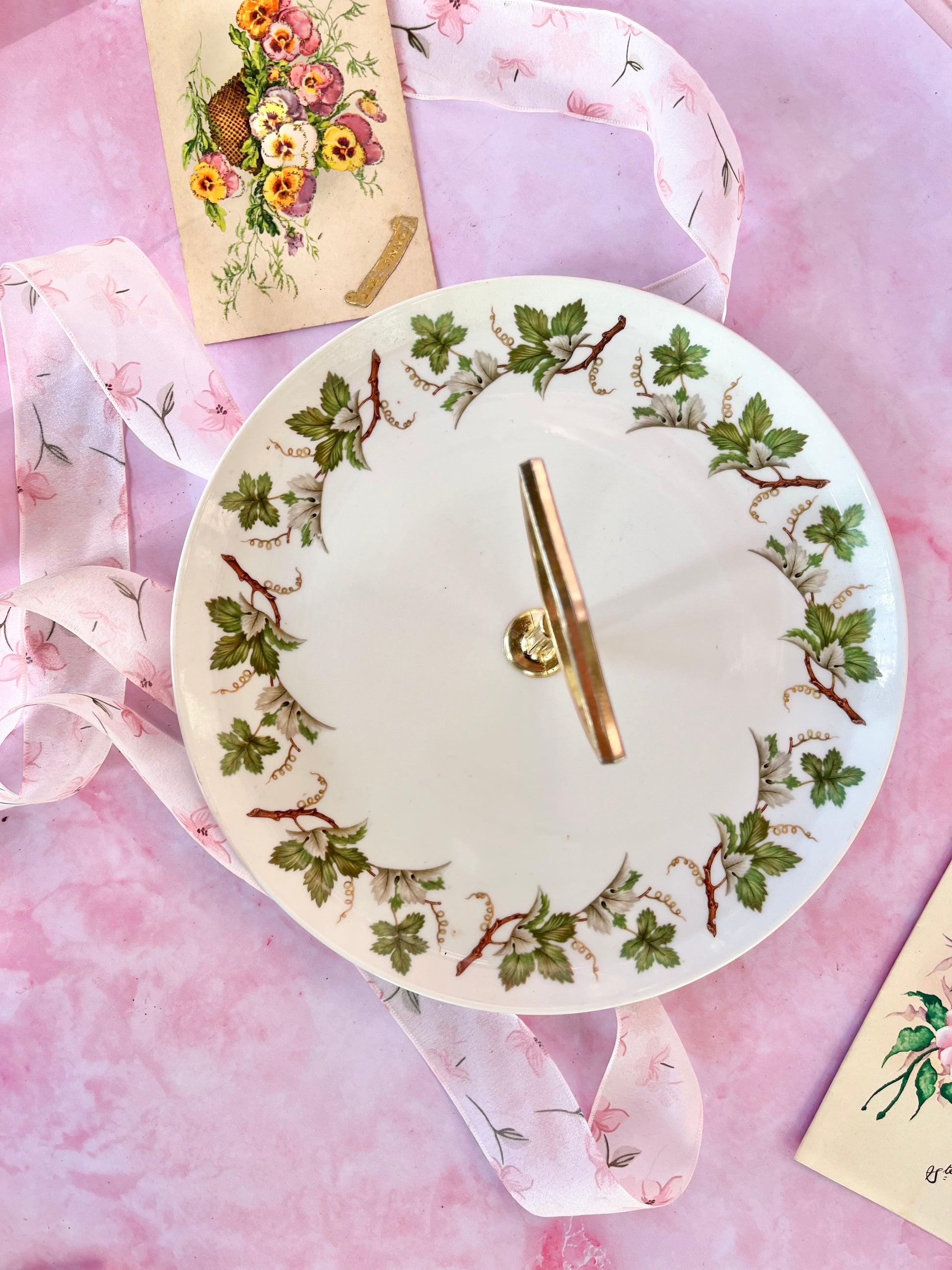 Magnifique serviteur en porcelaine, parfait pour présenter vos gâteaux, mignardises ou apéritifs avec style. Son décor délicat de feuillages sur tout le contour lui apporte un charme raffiné et intemporel — l’allié idéal pour sublimer vos tables, du quotidien aux grandes occasions.