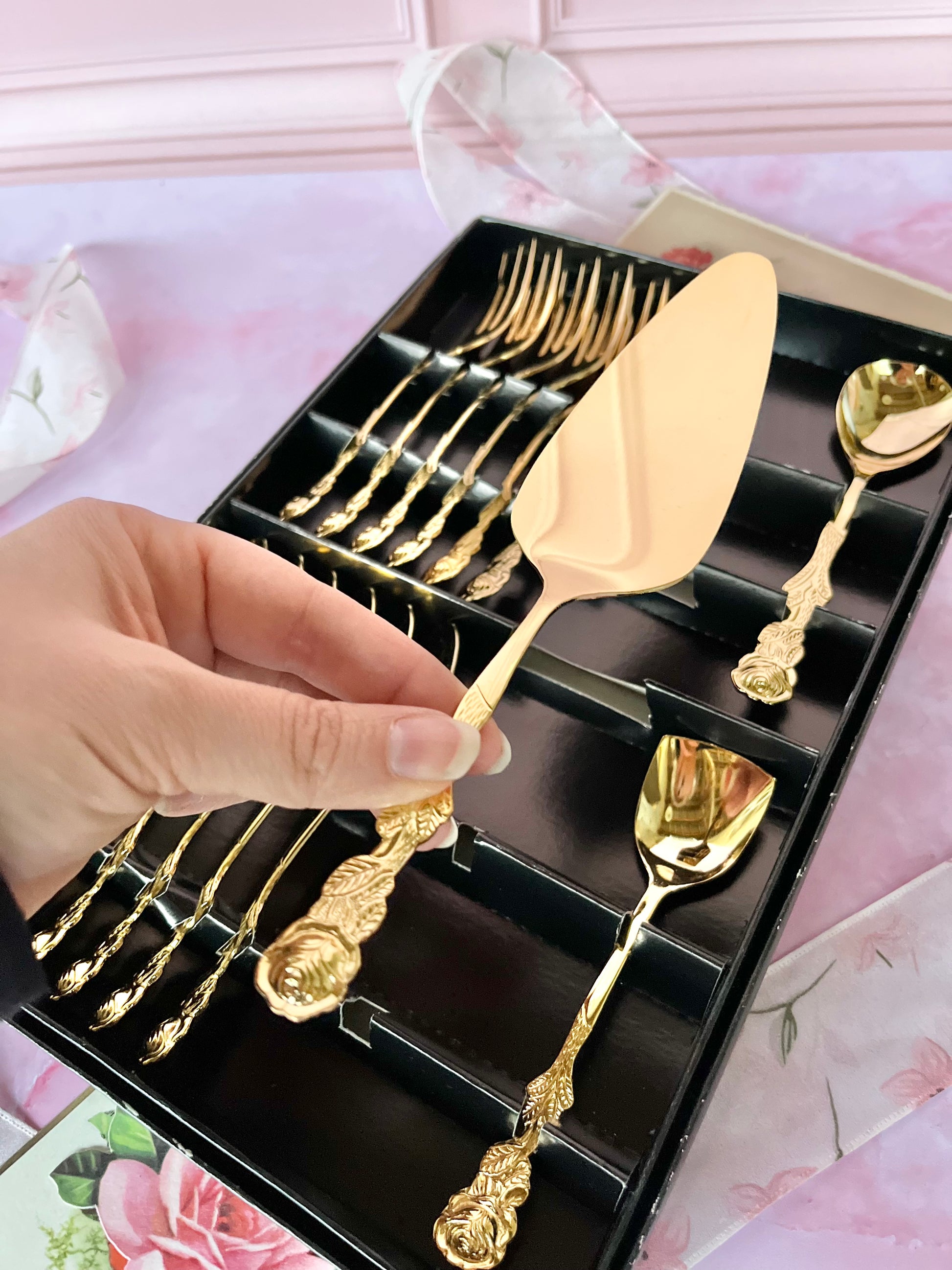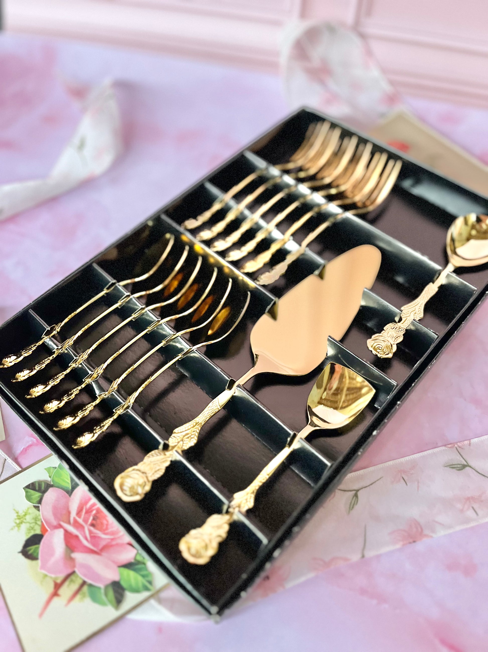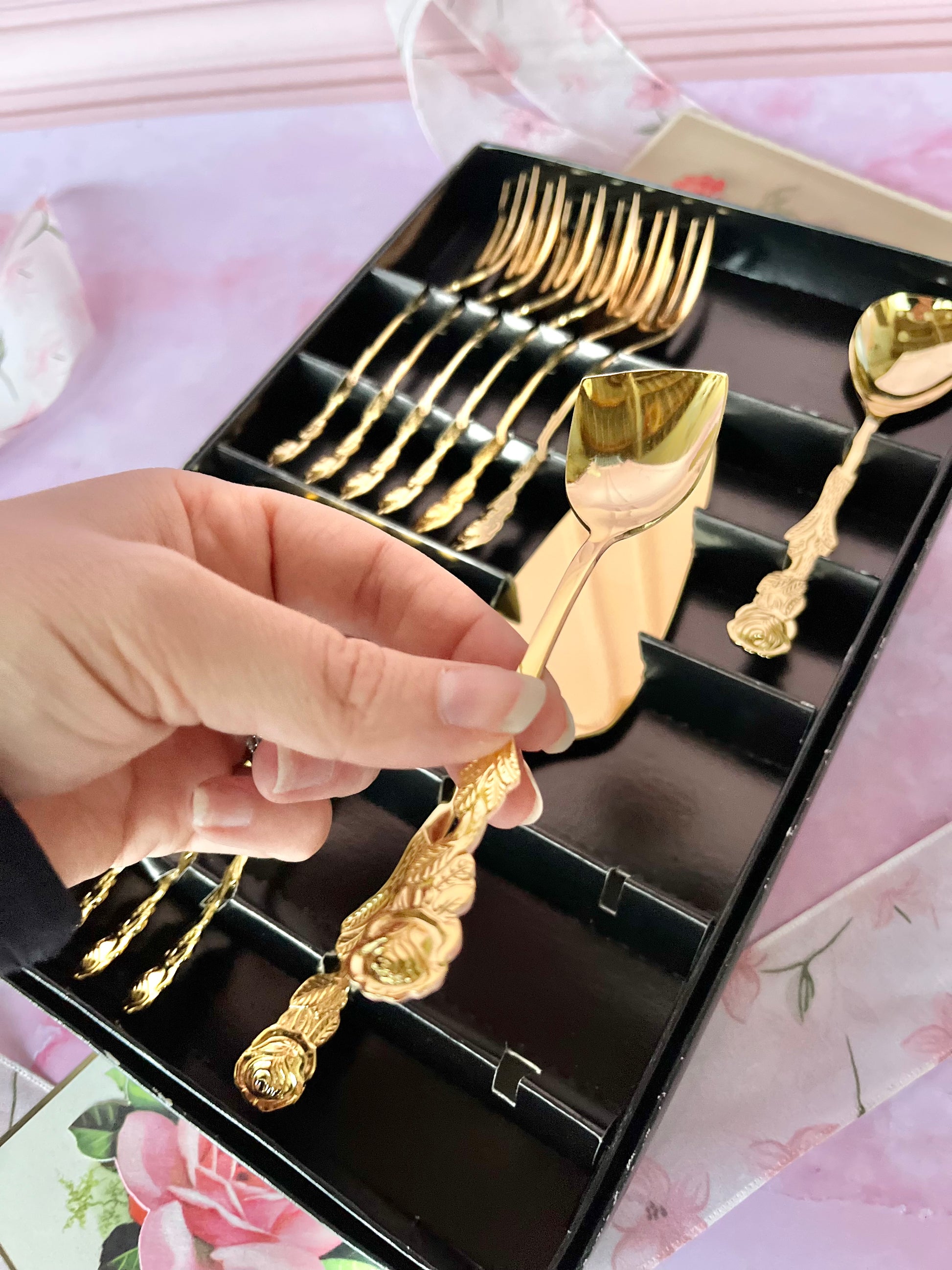 ✨ Set de 15 couverts à dessert en métal doré ✨