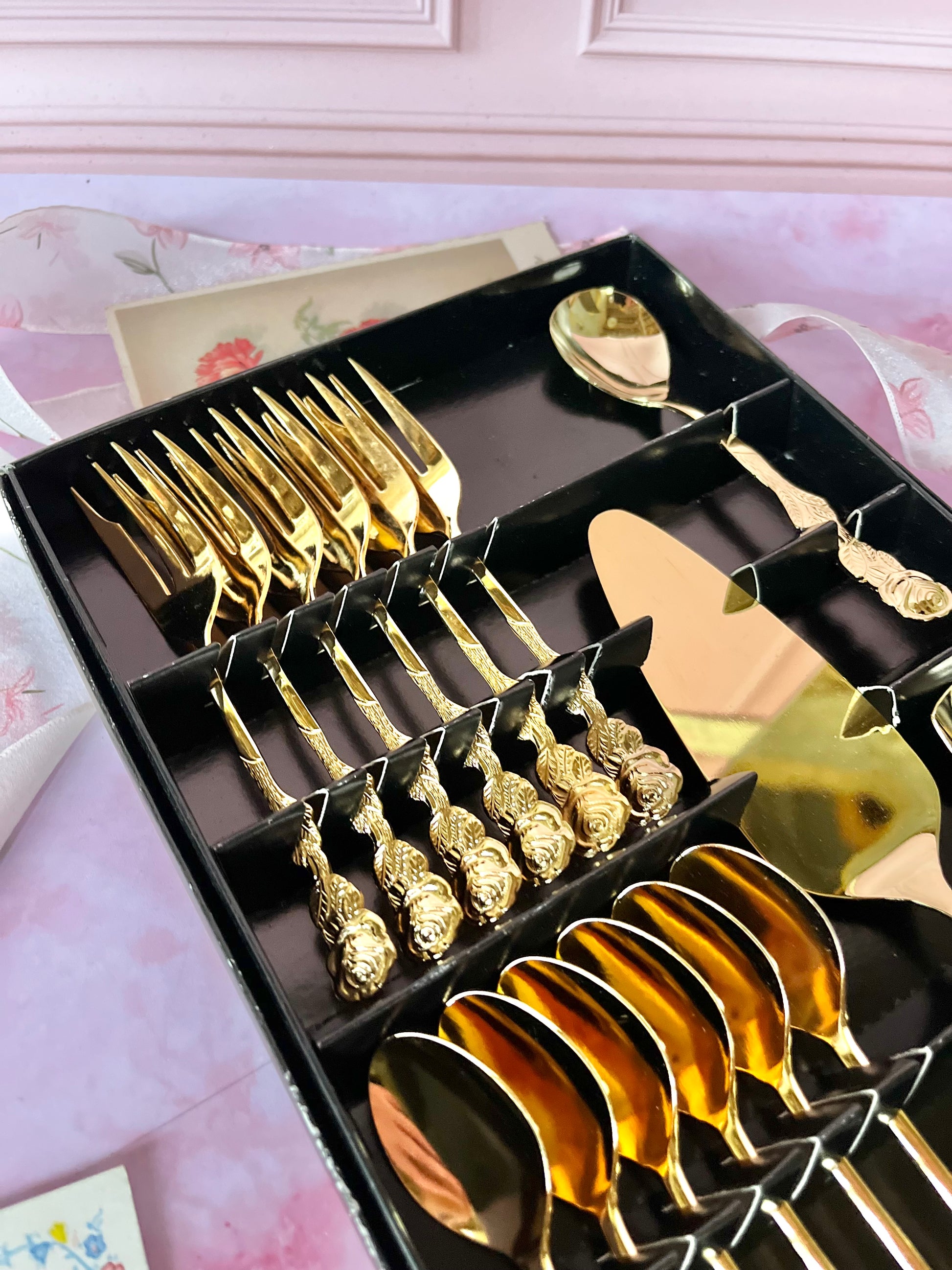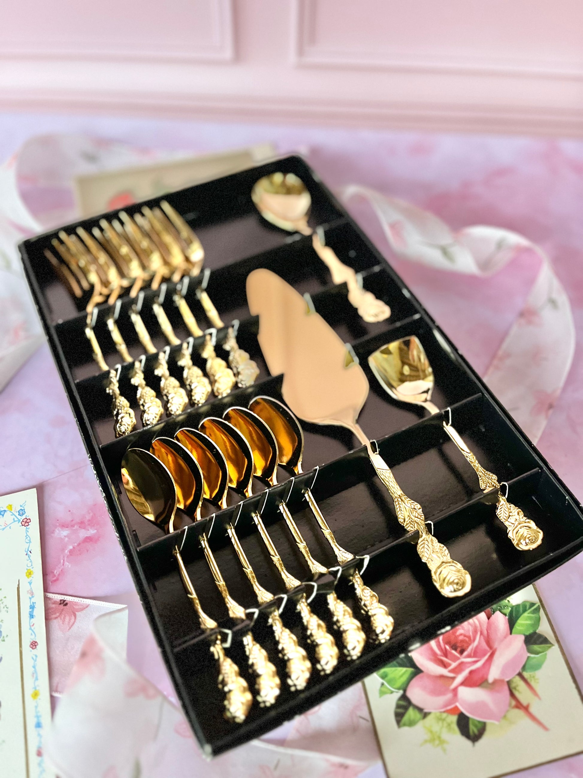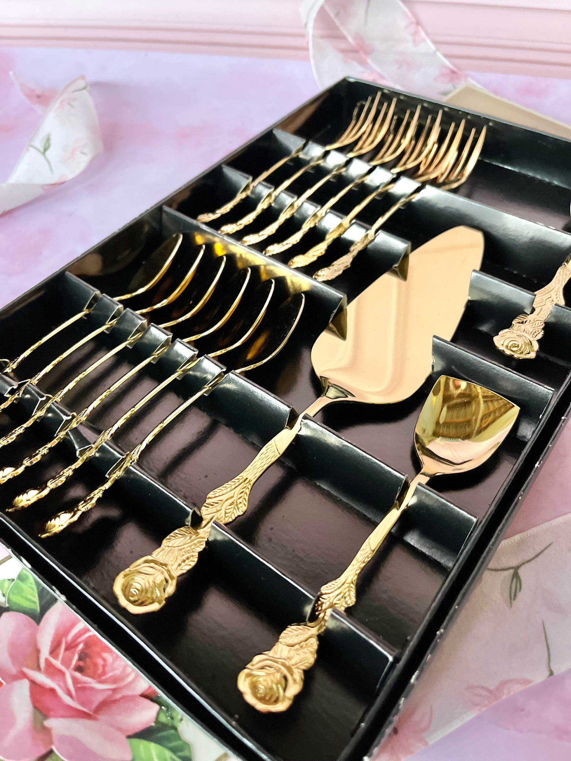 ✨ Set de 15 couverts à dessert en métal doré ✨