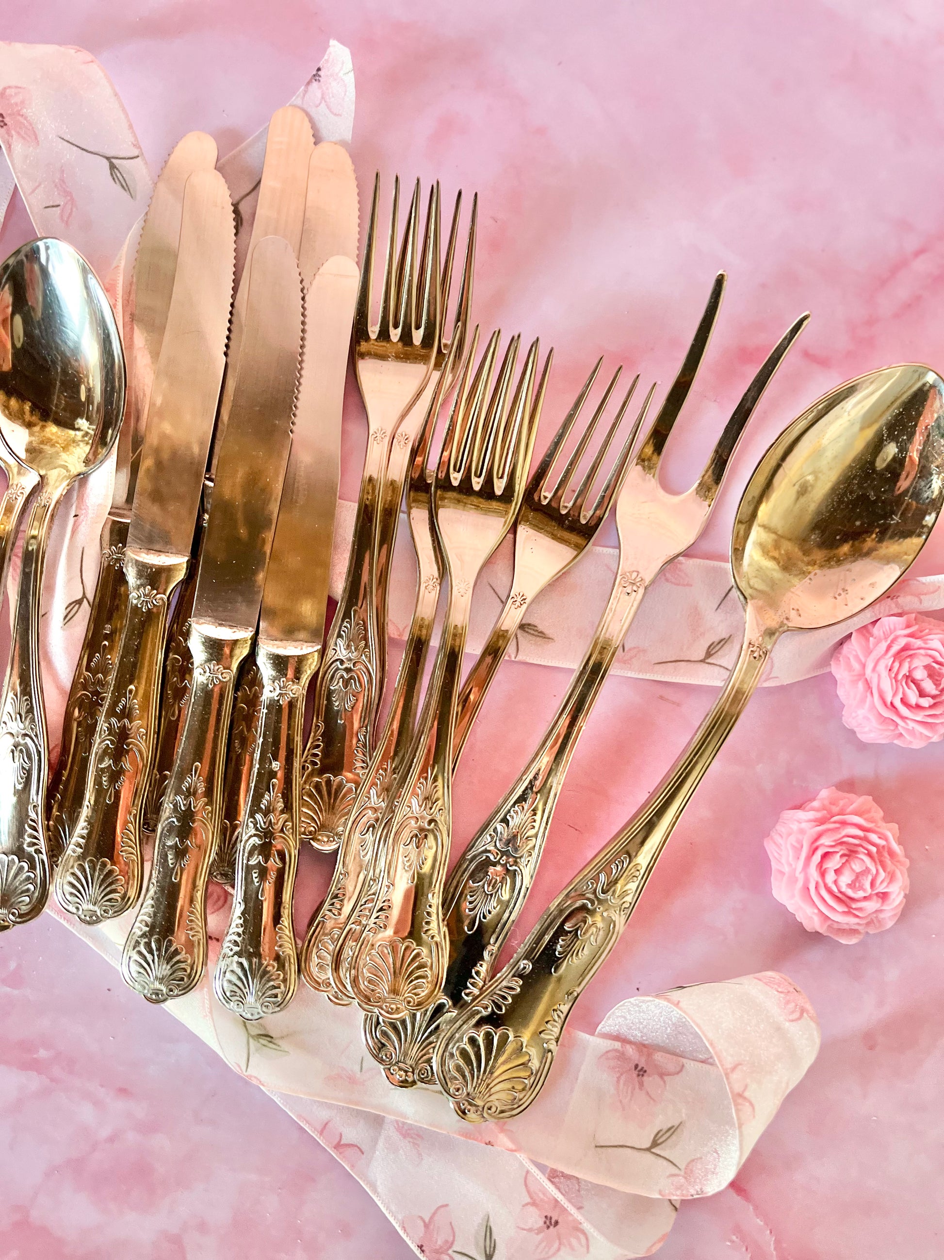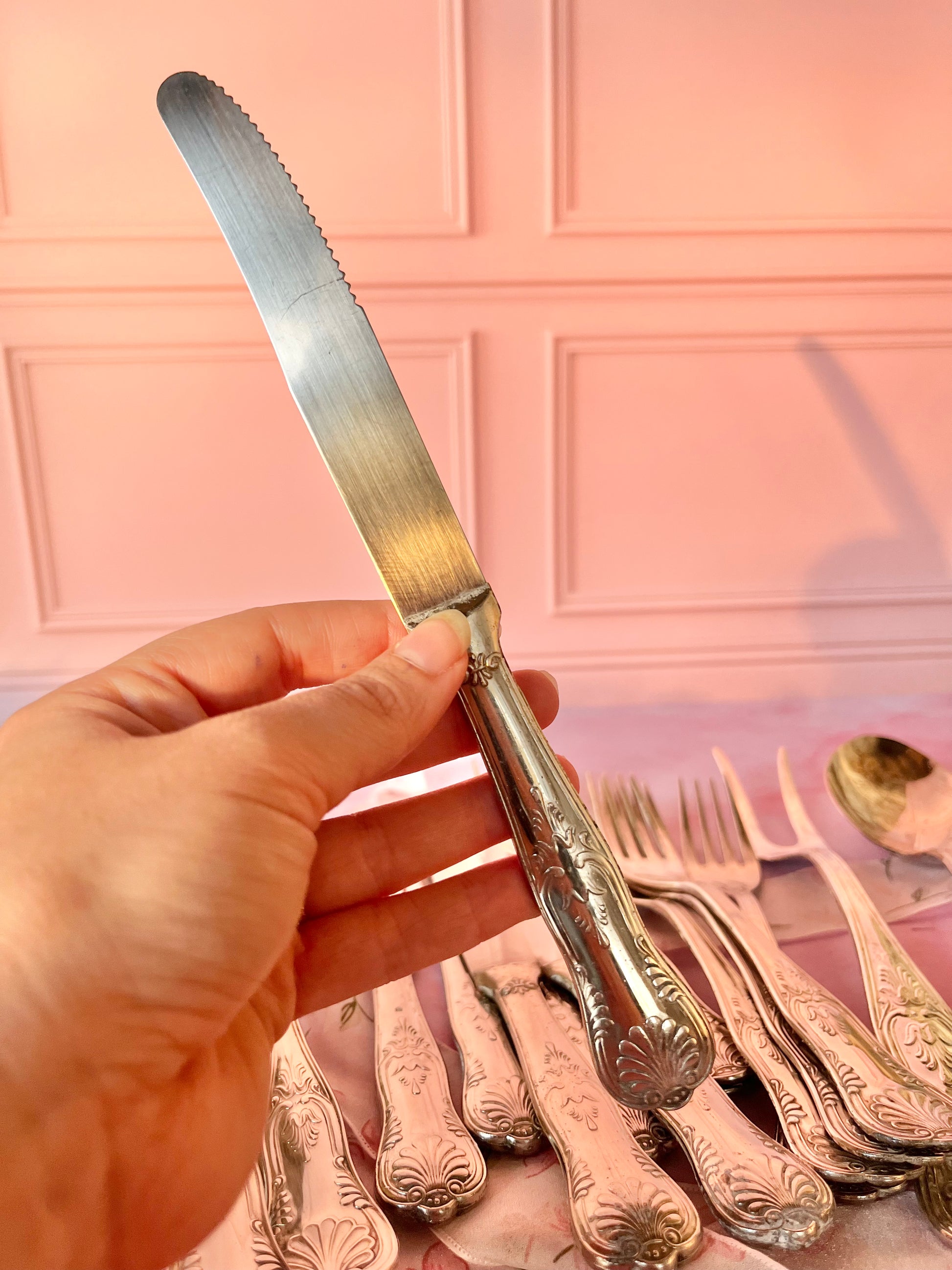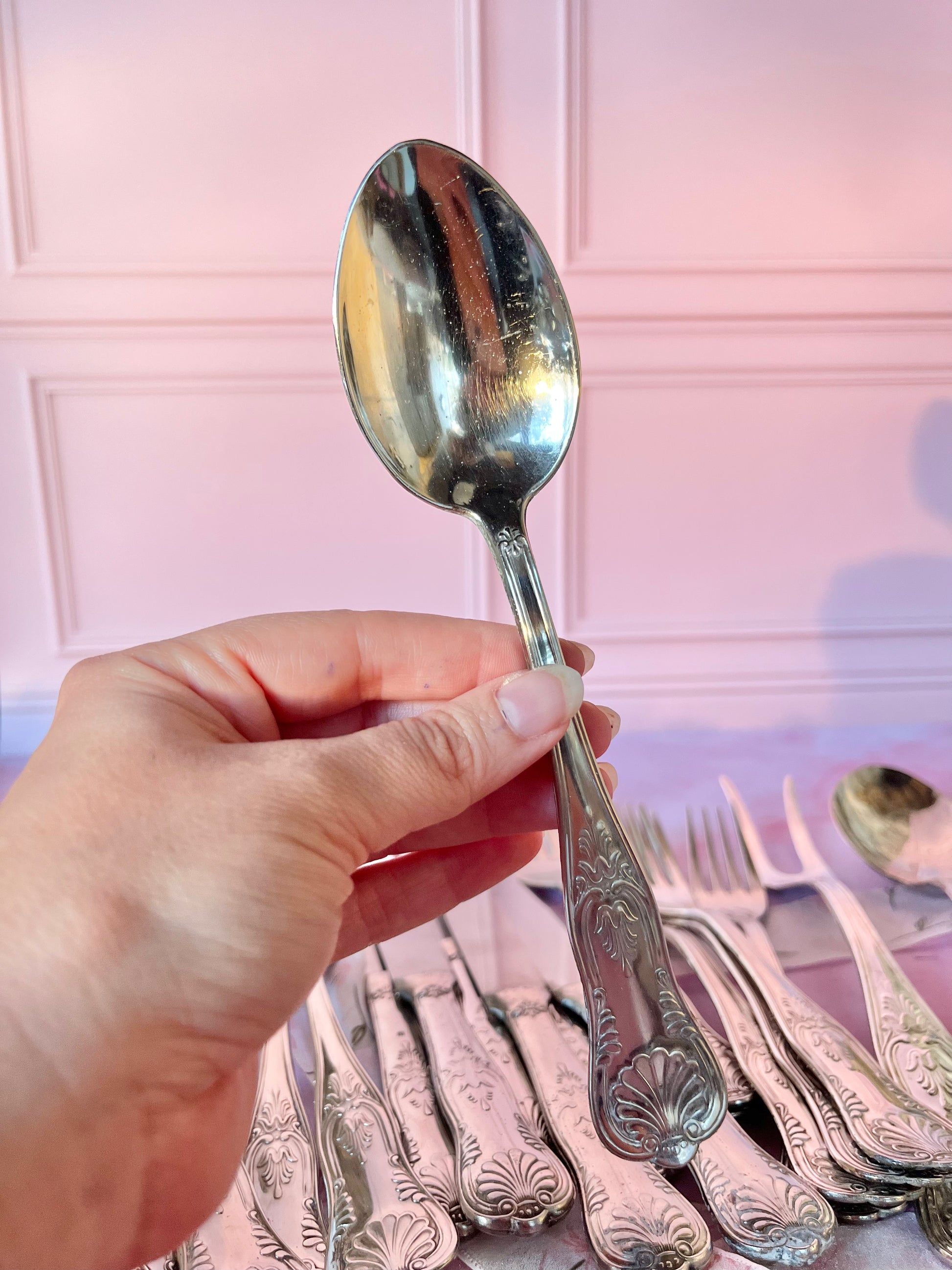 ✨ Set de couverts argentés – décor en relief
