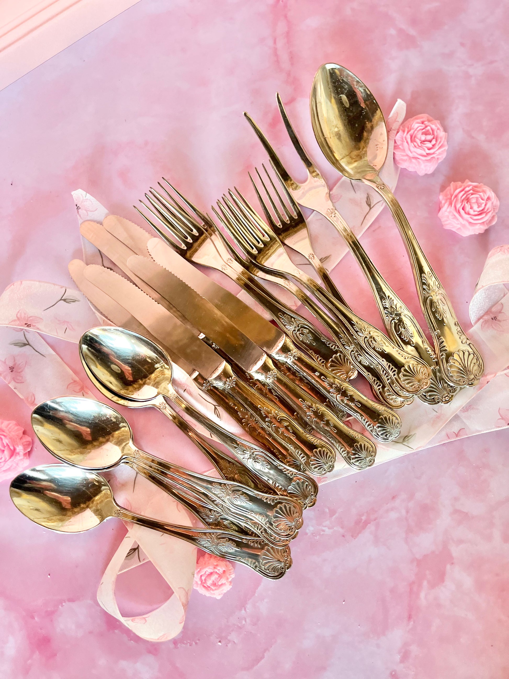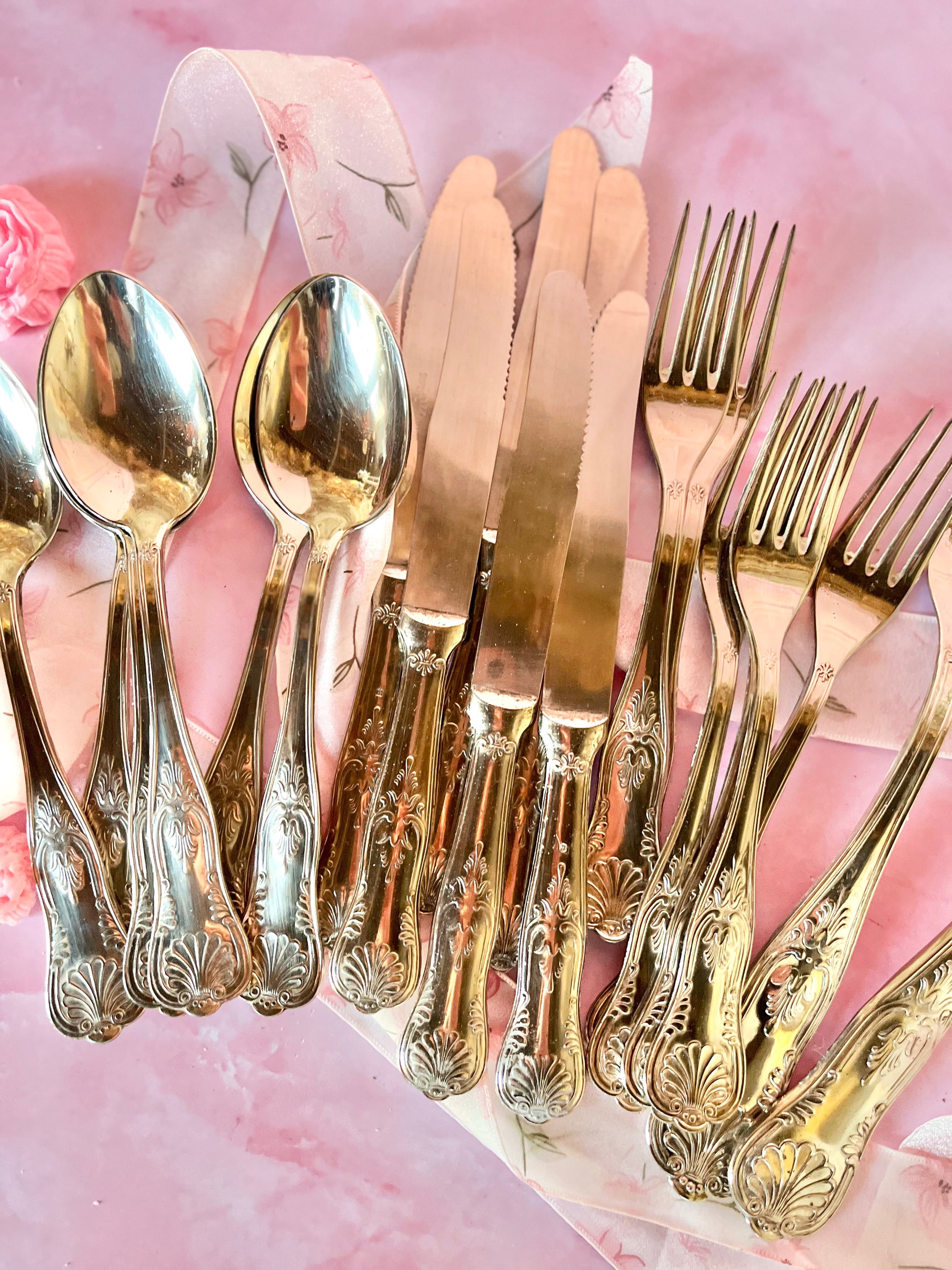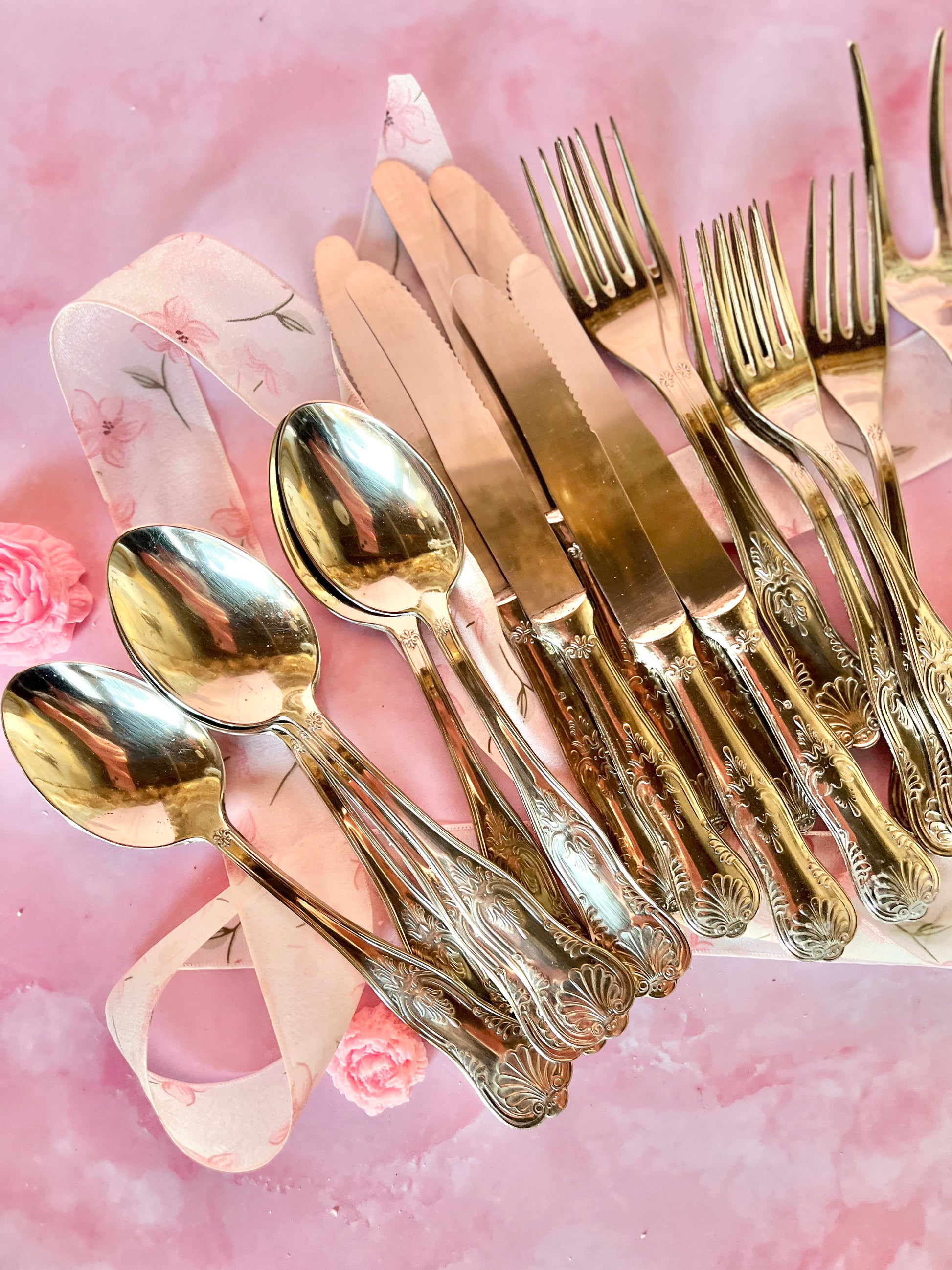 ✨ Set de couverts argentés – décor en relief