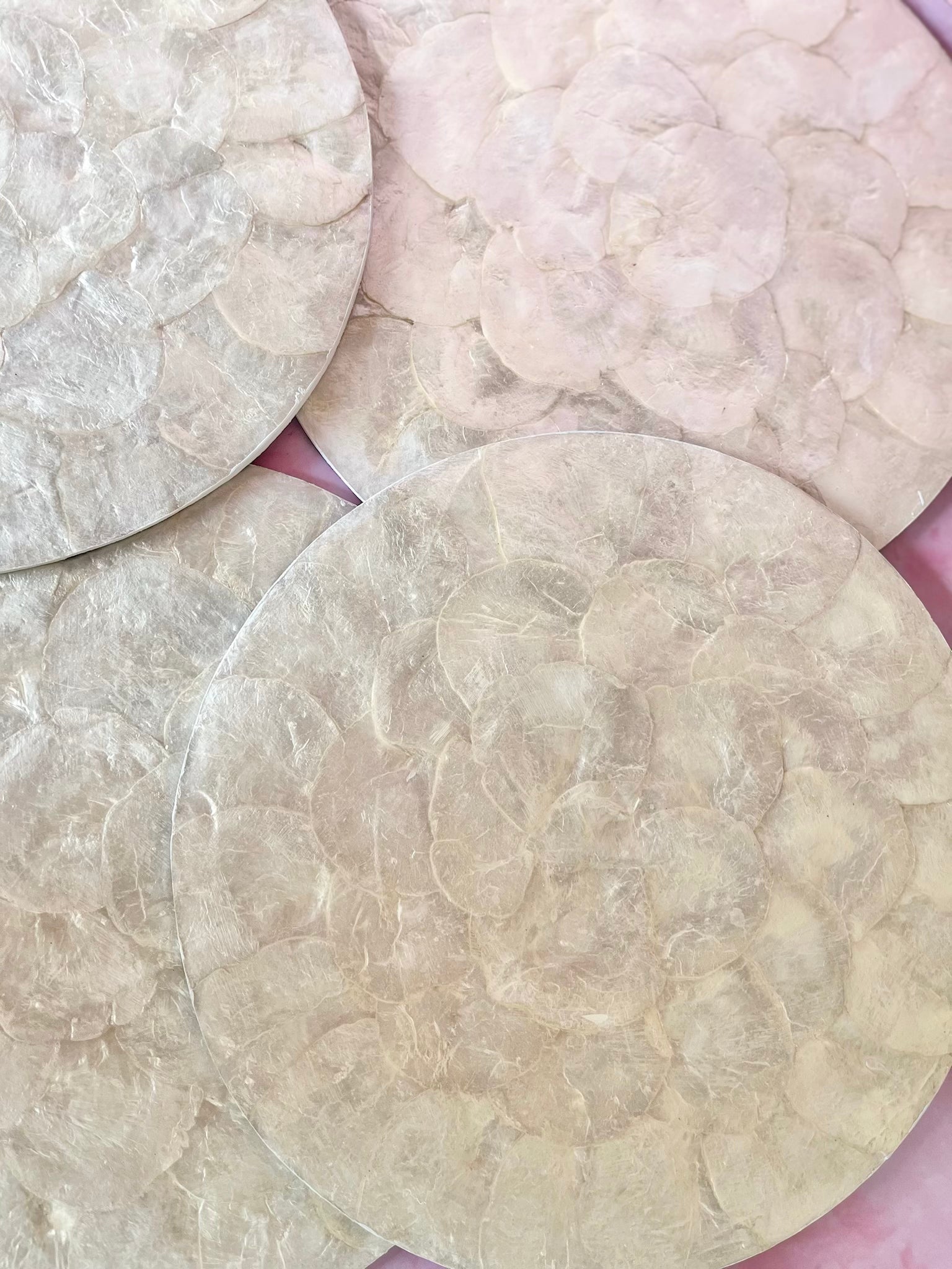 Chaque piĂšce est unique : les reflets de la nacre varient selon la lumiĂšre, rendant chaque dessous dâassiette absolument singulier.