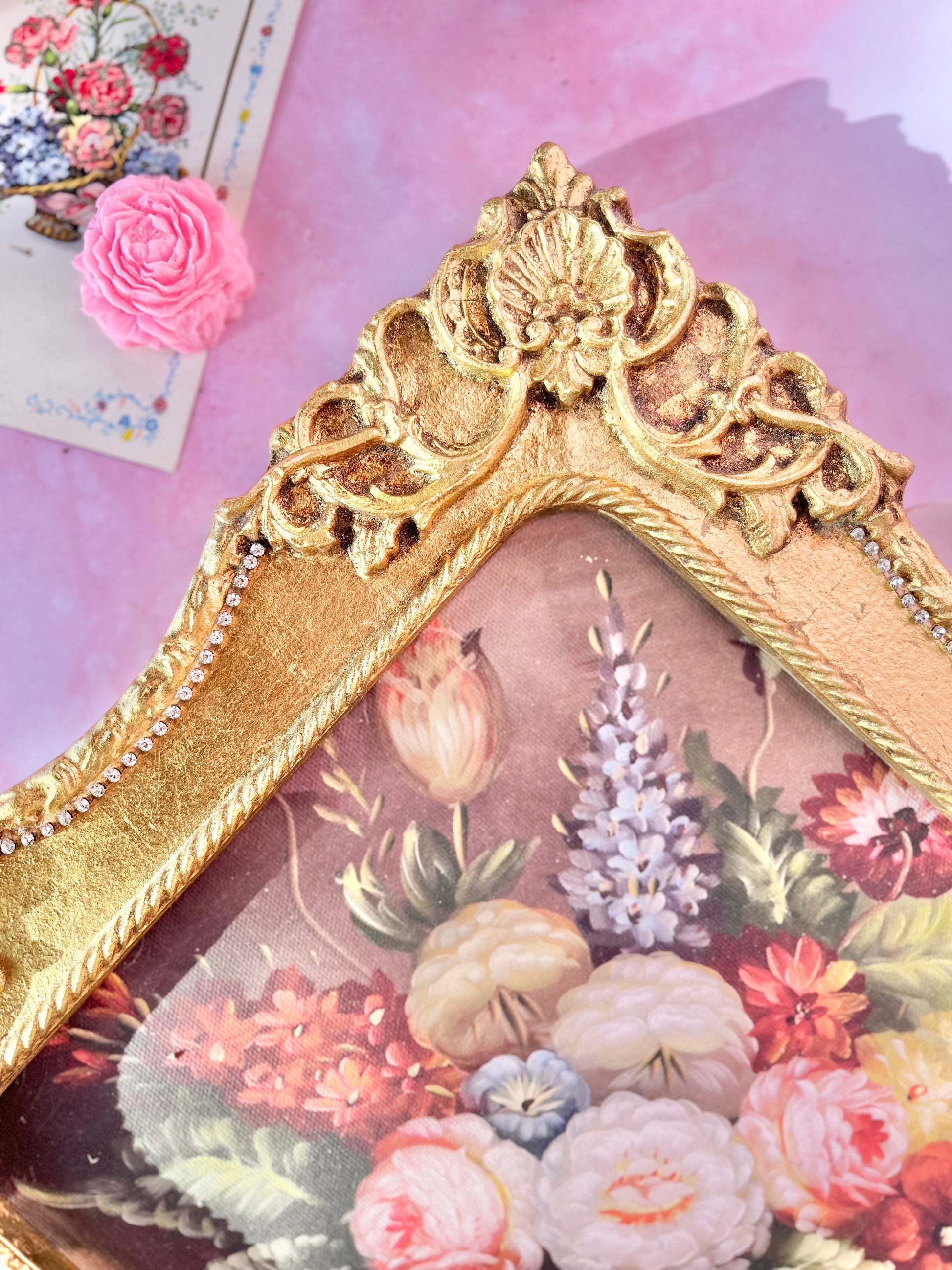 ✨ Tableau floral au cadre bois doré ✨