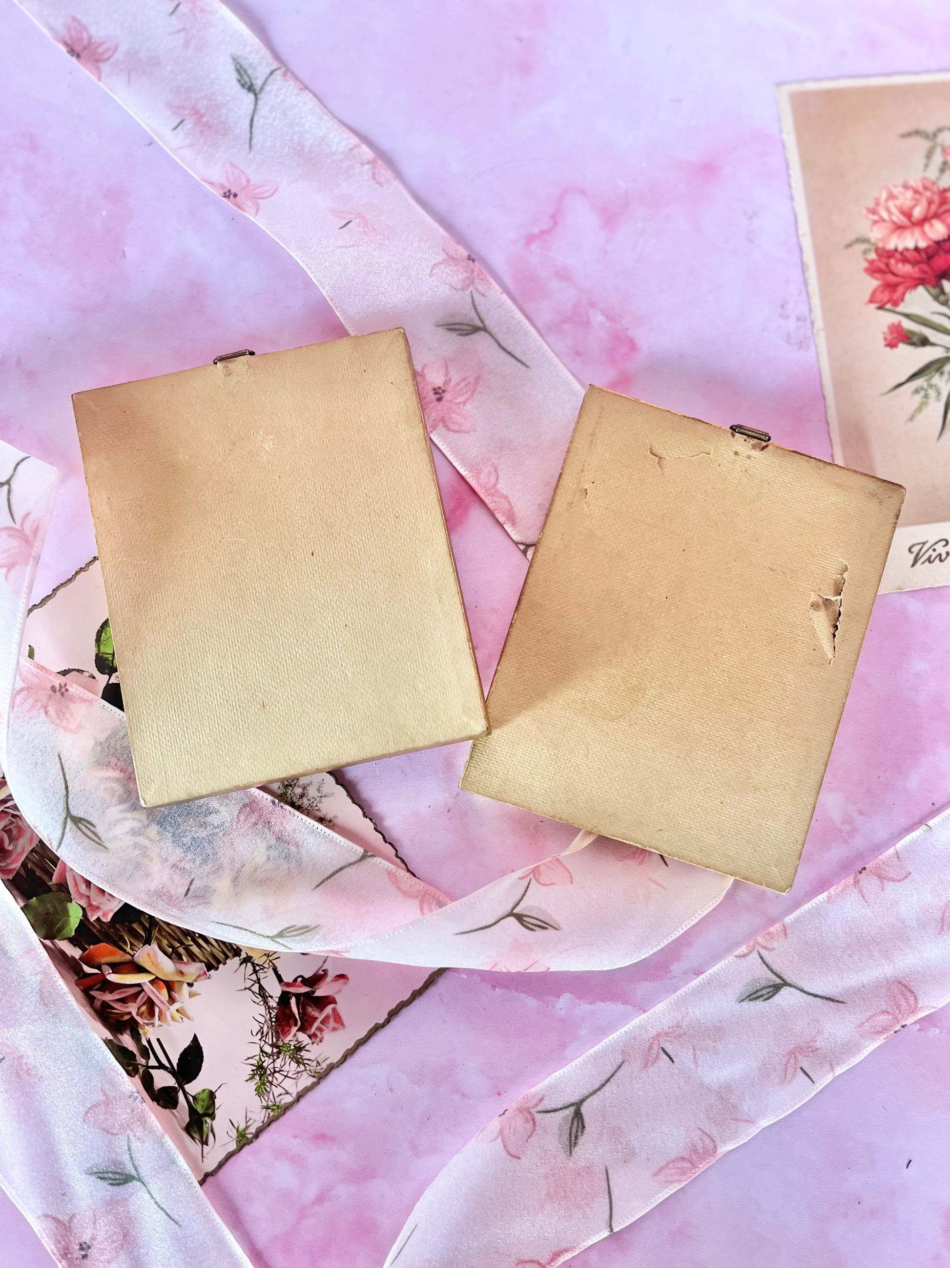 ✨ Paire de cadres miniatures en soie – Vintage & Pleins de charme ✨